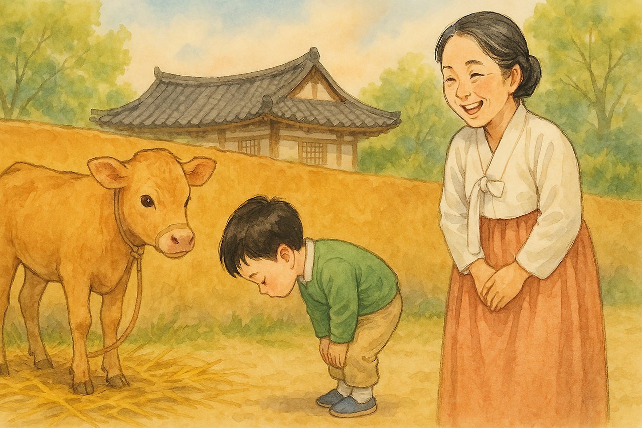 아 근데 베룸빡(담벼락)에 매어 놓은 송아지한테