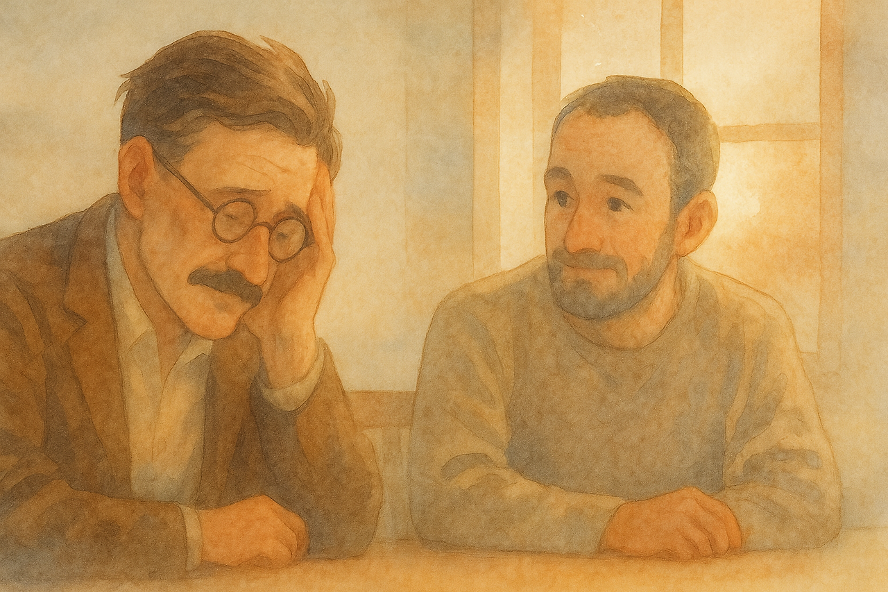 하루는 『율리시스』 작가 제임스 조이스가 끙끙대고 있길래,