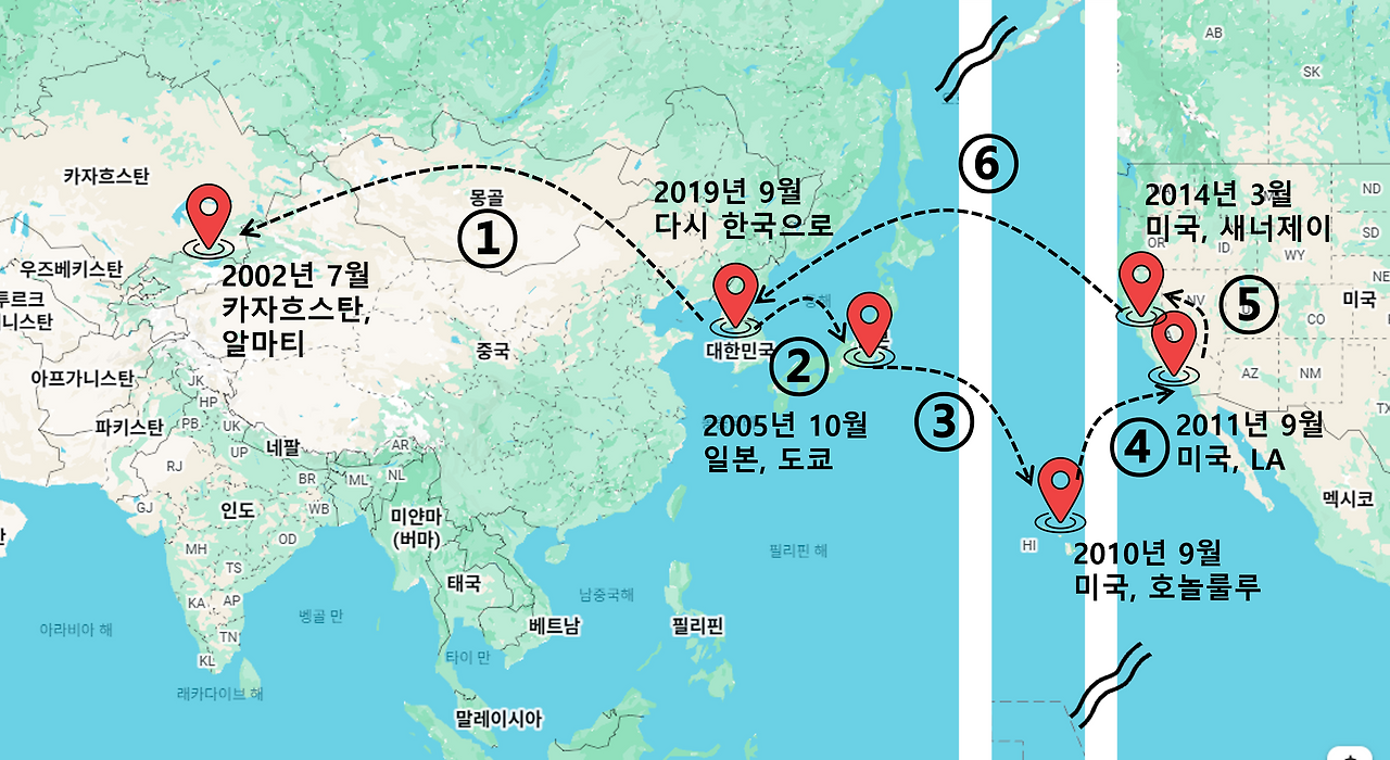 박: 네. 세어보니 총 16년을 해외에 있었습니다.