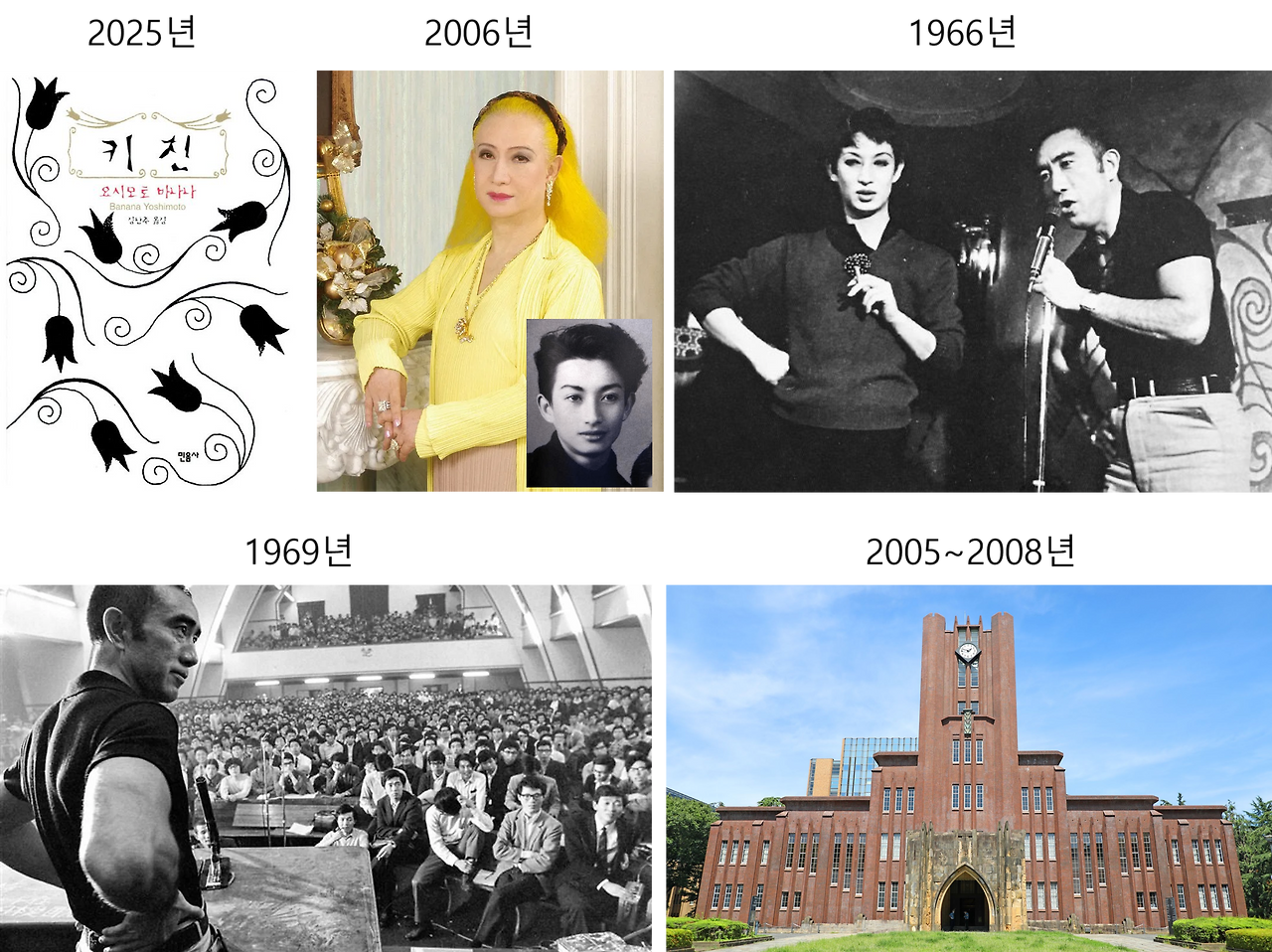 또 미시마의 1969년 5월, 전공투(전국학생공동투쟁회의)의 도쿄대 점거 당시 사진도.