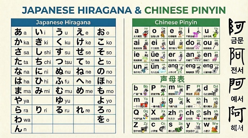 중국어 받침 발음은 'n(언)'과 'ng(엉)'이 전부이고, 일본어는 '응(ん)' 딱 하나뿐이다.
