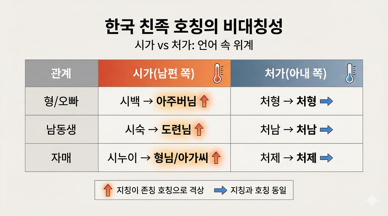 더욱이 남편 쪽과 아내 쪽 호칭에는 명백한 위계가 존재한다.