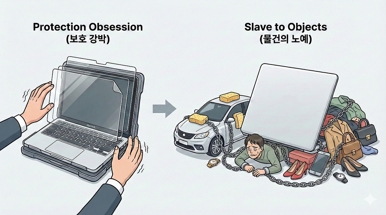 우리는 종종 우리를 위해 산 물건의 노예가 된다.
