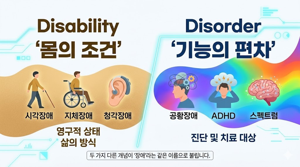 'disorder'에 장애라는 말이 붙는 순간 그 사람은 'disability'의 언어로 읽힌다.