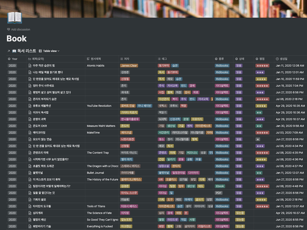 이런식으로 읽어온 책들의 요약을 노션으로 정리해 오고 있습니다.