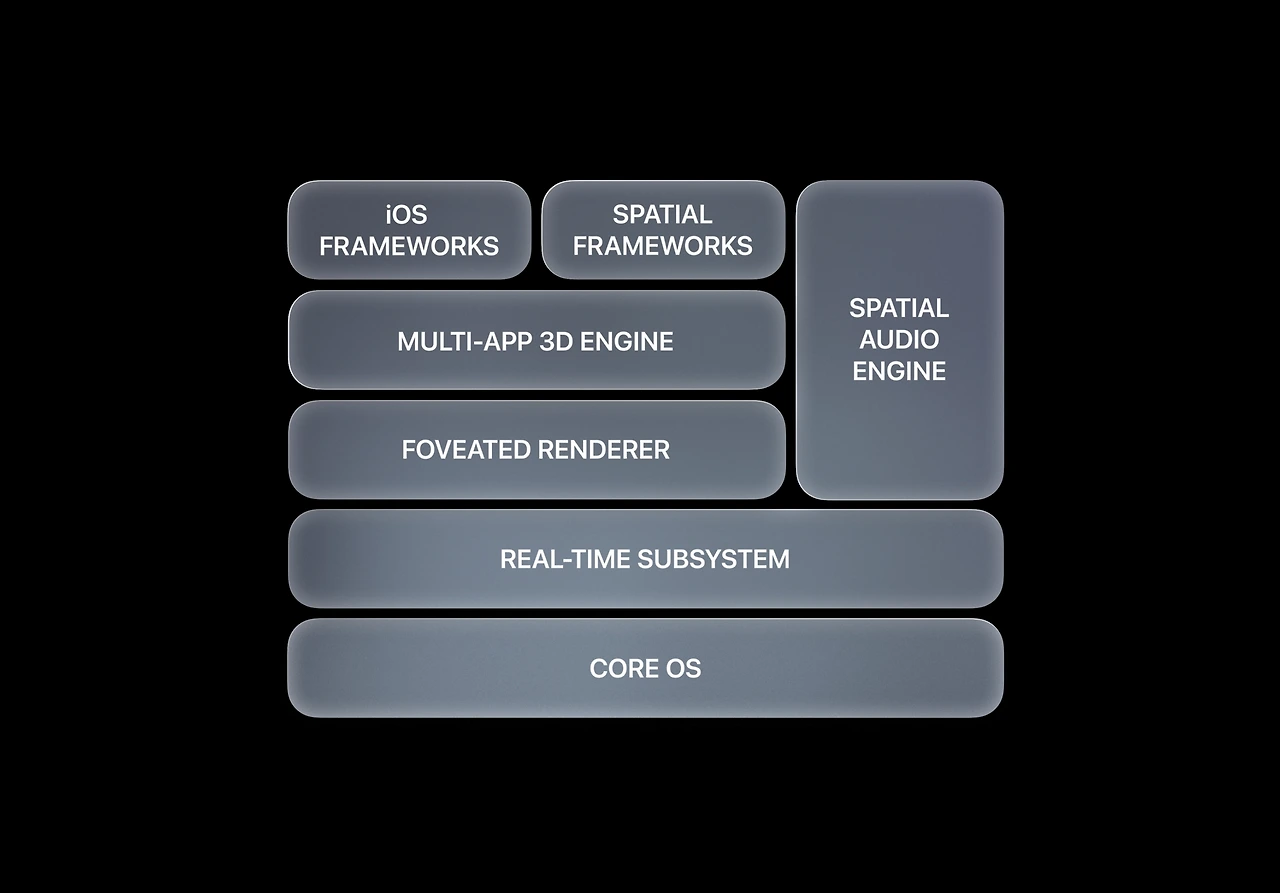 애플은 이번 헤드셋을 XR(Mixed Reality)로 정희한 비전 프로(Vision Pro)라는 이름을 붙였습니다. 다른 기기들처럼 가상의 공간 한 가운데 사람을 덩그러니 초대하지 않습니다. 자신의 현실이 증강(Augmented)되고 가상화(Virtual)되는 혼합(Mixed)현실임을 강조합니다. 즉, 이 헤드셋을 쓴다고 갑자기 안드로메다의 가상 세계로 순간이동하는 것이 아닌, 자신을 둘러싼 현실에서 서서히 혼합되는 확장된 세계를 경험하게 한다는 것입니다. 애플은 에어팟에서 선보인 공간음향(Spatial Audio)에서 은유를 따 와서 공간 검퓨팅(Spatial Computing)이란 개념을 선보입니다.