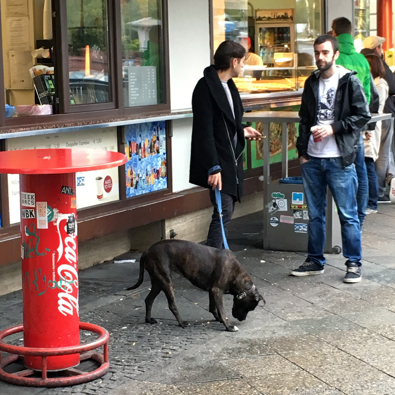 베를린에서의 만 7일간 로컬 개들을 유심히 봤다. 녀석들은 유별날 정도로 온순했다. 덩치가 있던 작던, 짖는 법이 없다. 마트에서의 광경 몇 가지가 생각난다. 시내 어느 매장을 가든 개 한 두 마리가 입구 앞에 엎드려 있는 모습을 종종 볼 수 있었다. 줄에 묶인 것도 아닌데 녀석들은 열이면 열, 다들 앞 발을 모으고 주인을 기다리고 있다.(재밌는 게 이런 장면만 모아서 텀블러 사이트를 운영하는 사람도 있다 http://dogswaitinginberlin.tumblr.com/) 매장 앞을 떡하니 가로막고 있는 개들이 귀찮을 법도 한데, 베를리너들은 오히려 귀엽다는 반응이다. 이런 면면을 봤을 때 적어도 베를린은 도그 프렌플리 도시가 맞다.