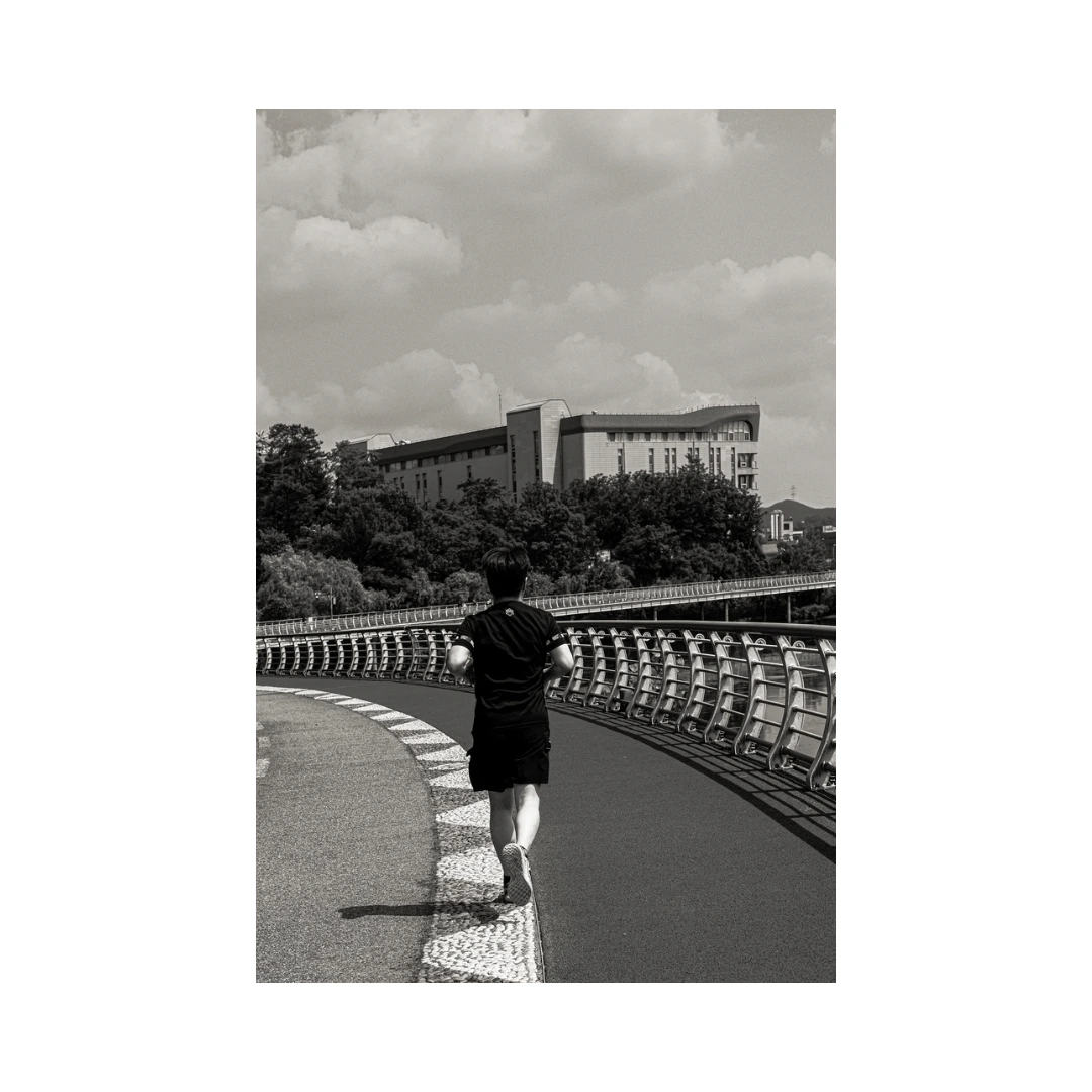 운동복, 땀 젖은 머리칼, 흔들리는 숨.