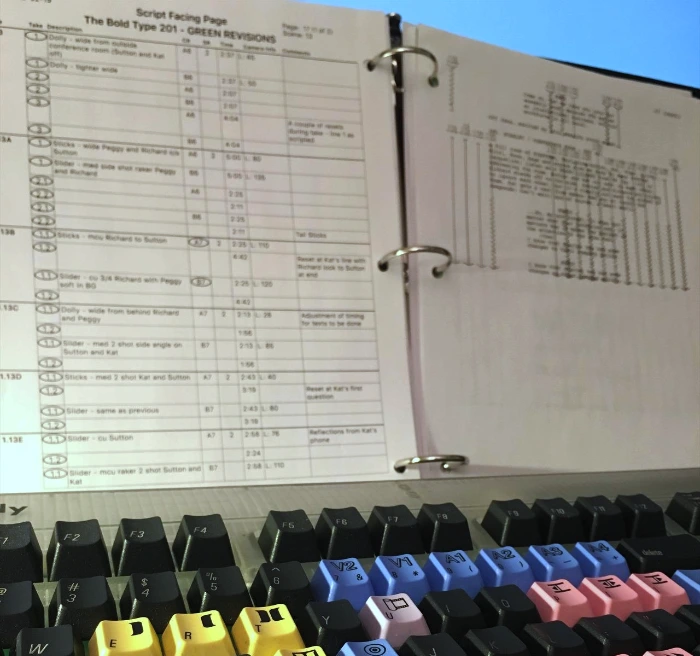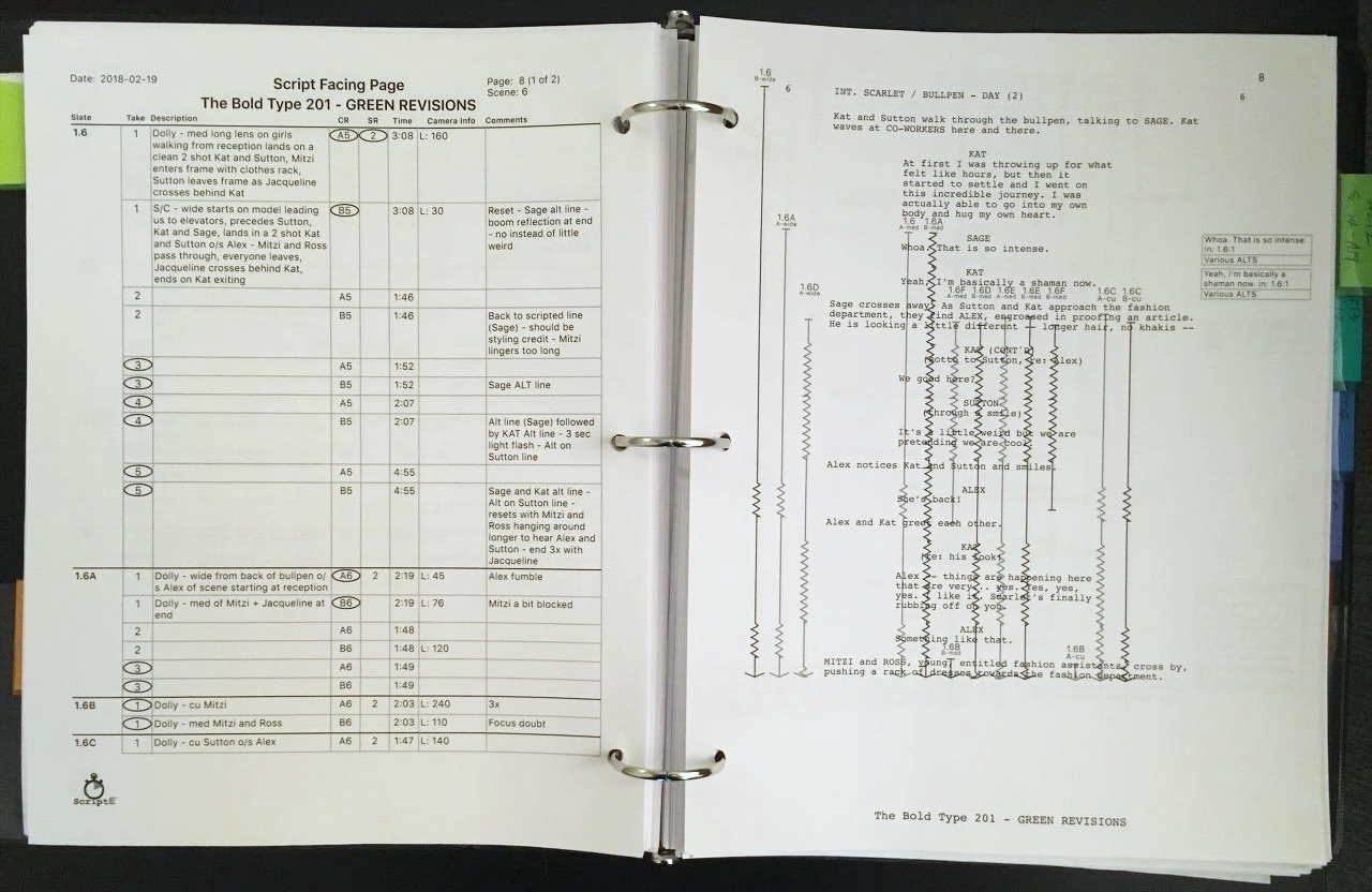 스크립트 슈퍼바이저는 촬영이 이루어지는 동안 현장에서 스크립트 슈퍼바이저가 작성한 문서로서 일반적으로 크게 세 가지 파트로 나눌 수 있습니다.