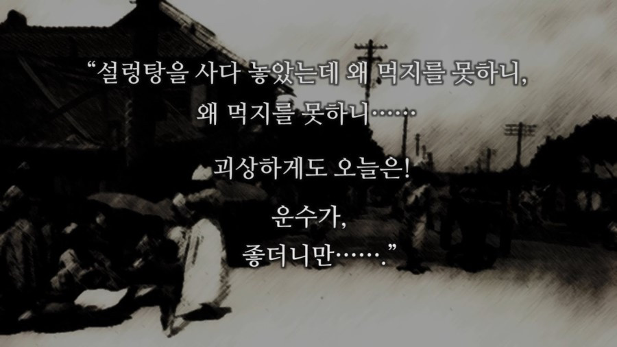 결국 인생 최악의 비극을 맞이 한다는 소설 내용... 그때 김첨지도 잠깐이나마 불행을 예견했었지만