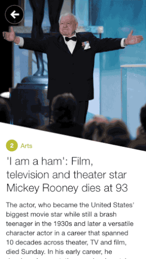 정보제공을 위한 앱에서는 잘 쓰지 않는, 과감한 사선이 돋보이는 레이아웃인데요. 이 앱의 목적은 한정된 양의 기사를 주기적으로 제공하고 그 안에 잘 정제된 풍부한 자료를 펼쳐주는 것입니다. 따라서 글의 대표 이미지가 중요한 역할을 합니다. 그야말로 글의 얼굴인데, 페이지 상단의 많은 부분을 차지하고 사선처리까지 되어 글의 영역까지 침범한 듯 보입니다. '사진도 글과 같은 비중으로 세심히 골랐으니 잘 봐줘' 라고 느껴지는데, 페이지 상단 끝에서 더 잡아당기면 사진이 확대되어 존재감을 더 높여주는 듯 보입니다.