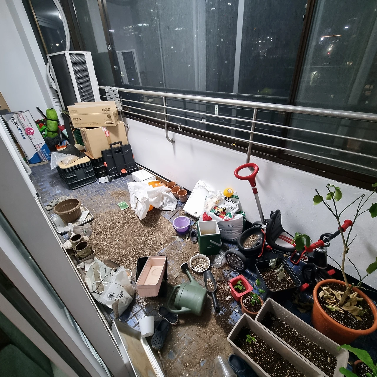 장난감 놀이보다 흙놀이를 좋아하는 우리집 작은인간의 별명은 '마당새'이다. 할비할미네 집에 가면 마당을 벗어나지 못한 채 벌새마냥 바삐 돌아다니며 온갖 마당일을 도맡아 하기 때문이다. 돌을 던지거나, 흙을 파는 등 주로 어른들이 필요로 하지 않는 일들이지만 사명감을 가진 채 아기 스스로의 과제에 집중하는 모습을 보인다. 그의 연장선상으로 우리집 베란다도 흙바닥이 되었다. 남편이 사랑하는 베란다는 이미 아기의 흙놀이에 양보된 지 오래다.