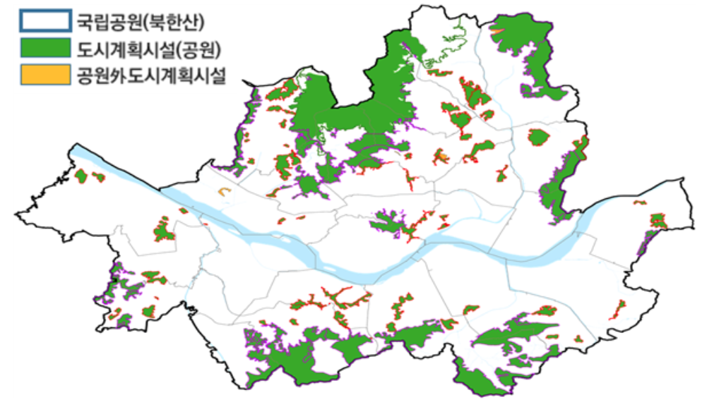 그리고 용산 공원은 이미 남산과 가장 가까우며 남쪽으로는 한강이 있어 공원이 없지 않다. 서울시내 공원 용지가 대법원 판결로 공원용지 혜제를 앞두고 있다. 이들 공원용지 매입에 용산 공원 매각 재원을 활용하는 것도 방법이다. 도심 곳곳에 이미 잘 조성되어 있는 공원은 공원혜제 판결로 아파트등으로 개발하면서 서울 제일 중심의 금싸라기 땅은 공원으로 개발하는 것은 더 이상한 일이다.