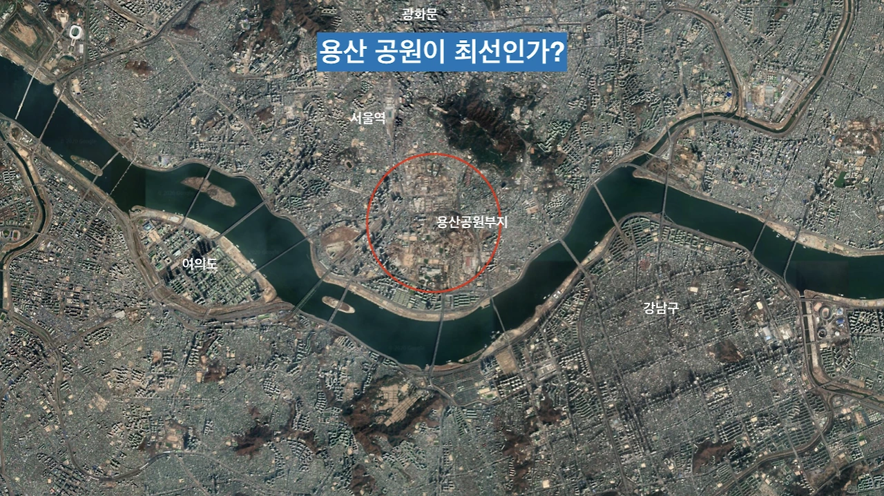 서울 한복판에 뉴욕 샌트럴파크 같은 공원이 있으면 좋겠지만 용산 미군 기지는 공원으로 하기엔 너무 좋은 땅이다.