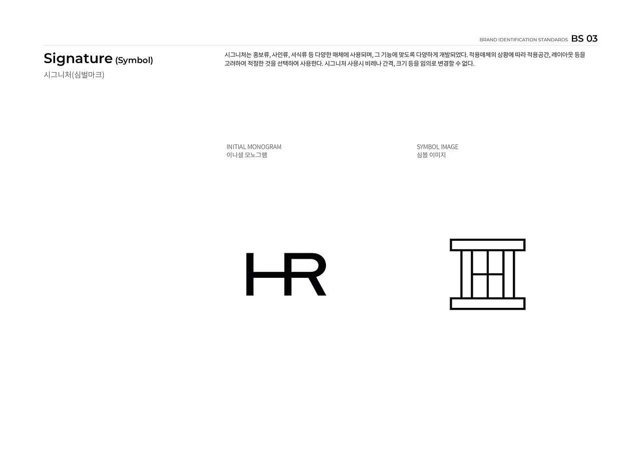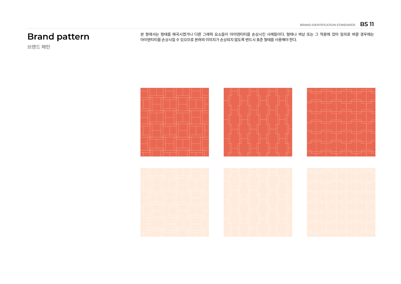로고 디자인이 확정되고 나면 다양한 곳에서 일관성 있는 디자인 사용을 위해 비주얼 가이드라인을 제작하게 됩니다. 기업의 가치에 맞는 로고 디자인도 중요하지만 일관성 있는 사용도 중요하므로 가이드라인을 토대로 브랜드를 관리해야 합니다. 로고 시그니처, 브랜드 컬러, 폰트, 패턴 등을 제작했으며 해당 기업의 담당자가 이후 브랜드 관리에 참고할 수 있도록 매뉴얼 북으로 정리하여 원본 파일을 전달합니다. 아래 이미지는 매뉴얼 북 베이직 시스템의 일부 이미지입니다.