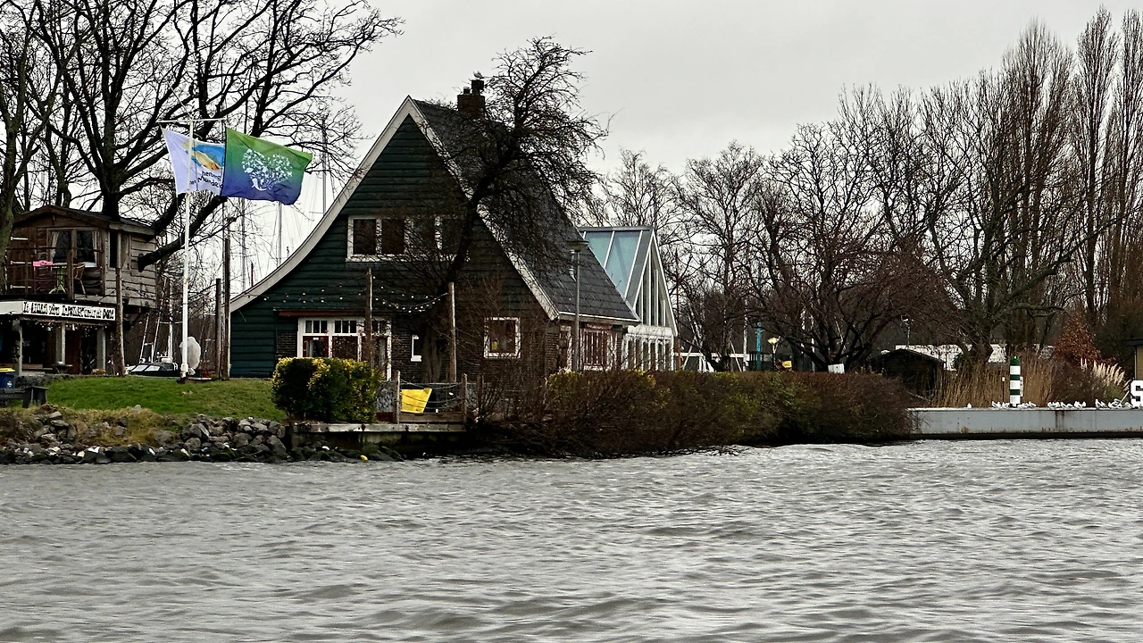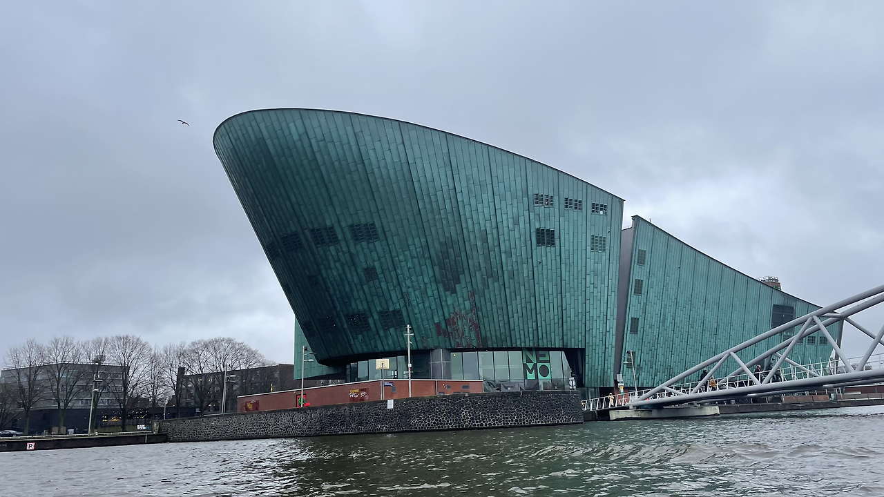 맨 왼쪽, 초록 건물은 암스텔 강변의 자연사 박물관.