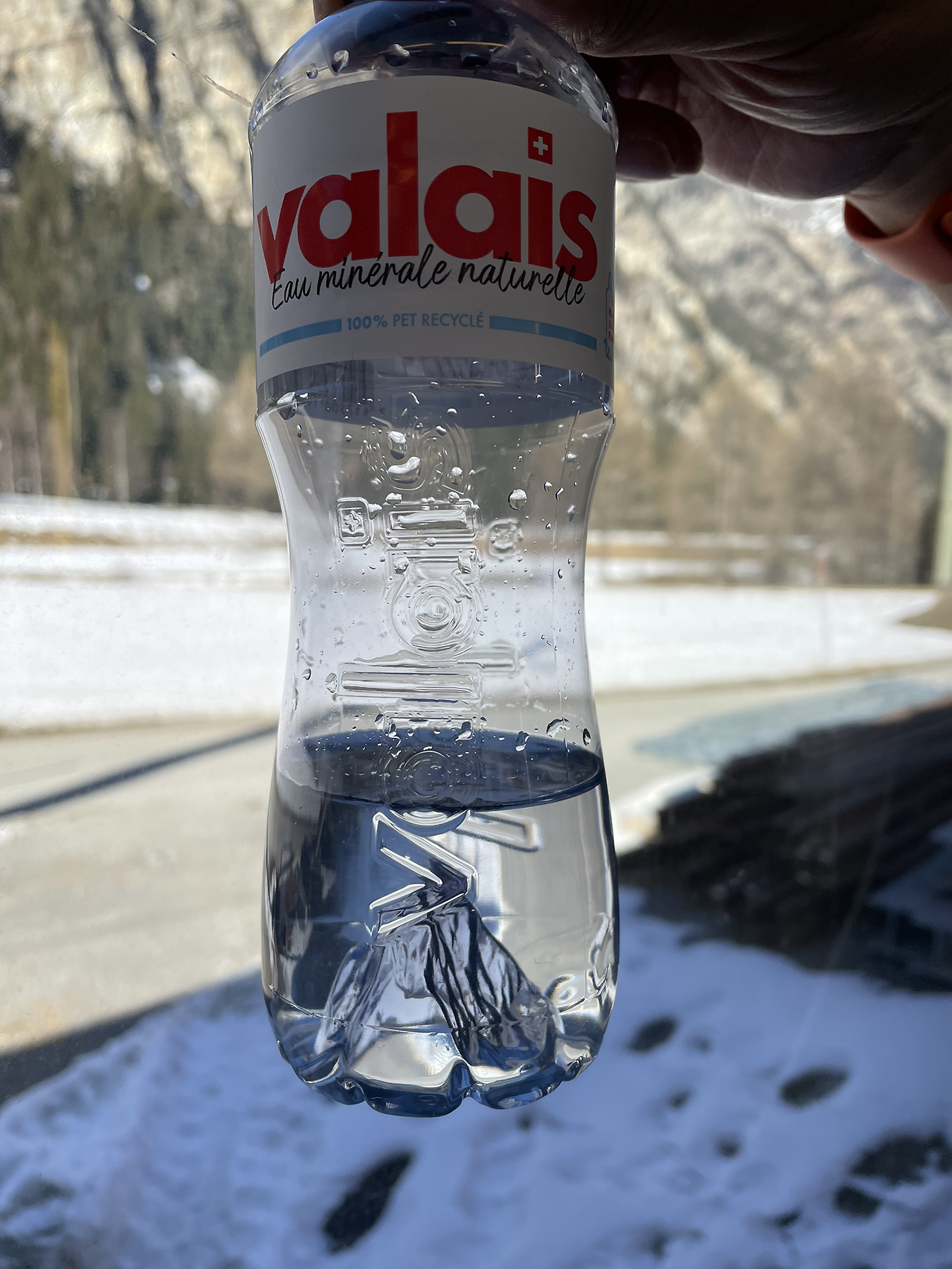 열차 안에서 만난 티모. 사랑의 불시착의 스턴트 맨으로 행글라이더 타는 장면에 출연했다(좌). 마터호른이 새겨진 체르마트의 생수 병(우)
