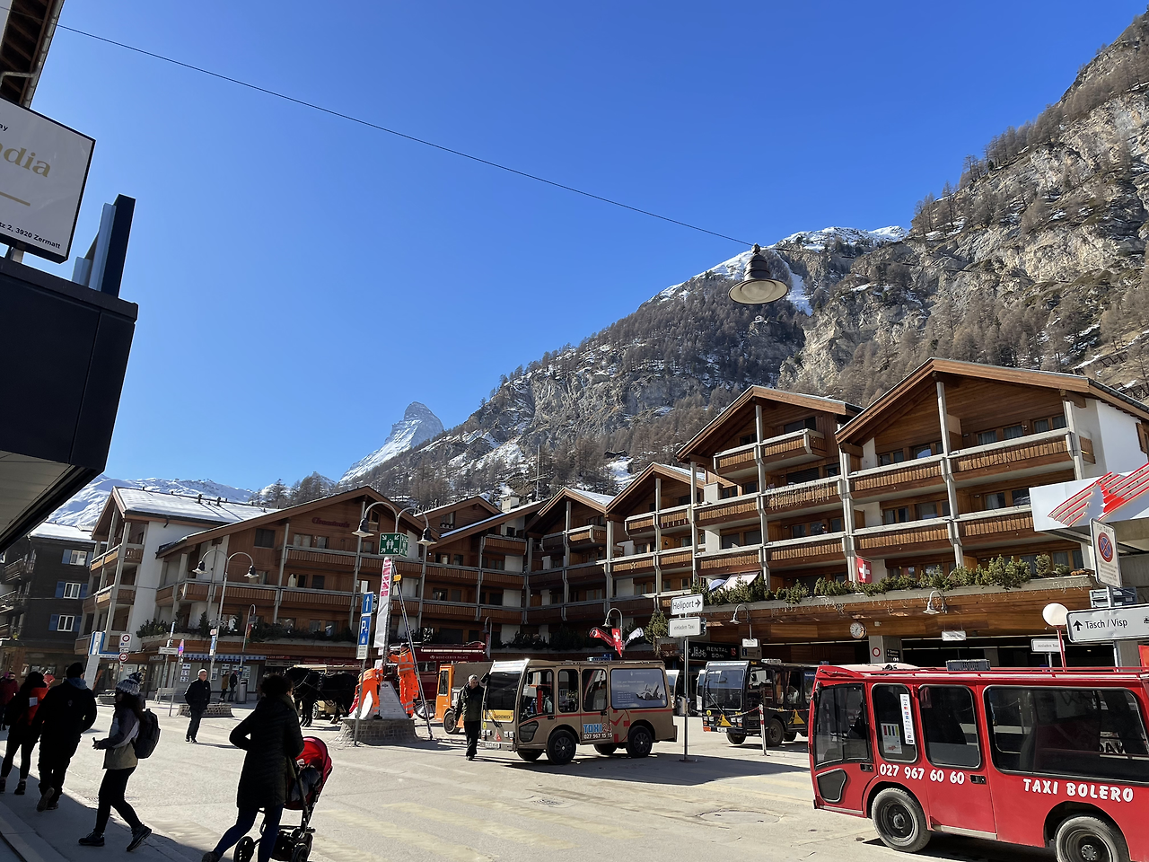 체르마트는 자동차가 없는 산속 청정마을이다. 한겨울의 체르마트다, 말해 무엇하랴. 과장 없이, 호흡을 할 때마다 심장이 얼어붙는 것 같다. 기침에 콧물까지 처치해야 하는 나로선 숨쉬기가 고역이지만 이 쨍한 상쾌함 앞에 웅크리고 있을 수는 없다. 나는 가슴을 천천히 열고 마스크를 낀 채 길고 깊은숨을 들이켠다. 우와~~ 스위스구나!