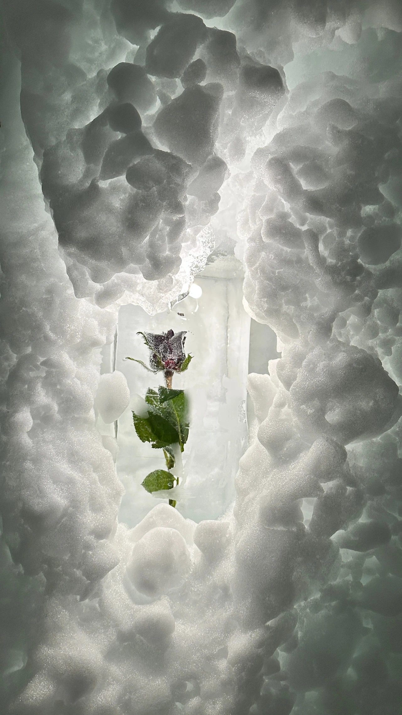 이글루 호텔 내부1. 얼음 속 장미꽃 장식, 첫 마음은 아름다웠으나 잠시 후 짠 하니 아릿함을 주던 장식이다. 얼음 속에 갇힌 눈부신 꽃은 아이러니다.