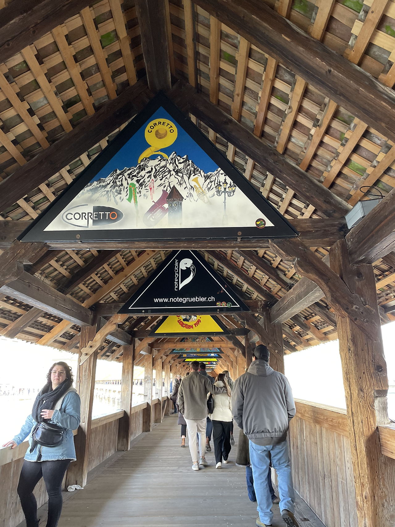 무지갯빛으로 일렁이는 로이스 강 위에, 유럽에서 가장 오래되었다는 목조 다리 카펠교가 놓여 있다. 카펠교는 교각 위에 삼각형의 목조 지붕까지 갖고 있다. 다리를 걸으면 지붕 아래에는 익살스러운 그림들이 그려져 있어 다리 감상에 또 다른 재미를 준다. 이 다리는 1300년대에 지어졌으나 1993년 화재로 모두 소실되었고, 현재의 다리는 복제품이라 한다. 이 다리를 건너면 구시가지다. 카니발 행렬이 지나간 바인마르크트 광장, 종이 조각과 먹다 남은 음식이 거리에 나부끼고 있다. 이 말로 스위스 거리가 지저분하다고 판단하지는 말기 바란다. 스위스는 어딜 가나 깔끔하고 사람들은 친절했다. 살인적인 물가도 관광객인 나로서는 기억할 요소다. 감기에 알레르기에, 몸이 무리를 하나 싶어 나는 비싼 걸 알고도 한식집을 찾는다. 비싼 한 끼를 해치우고 다시 길을 나선다.