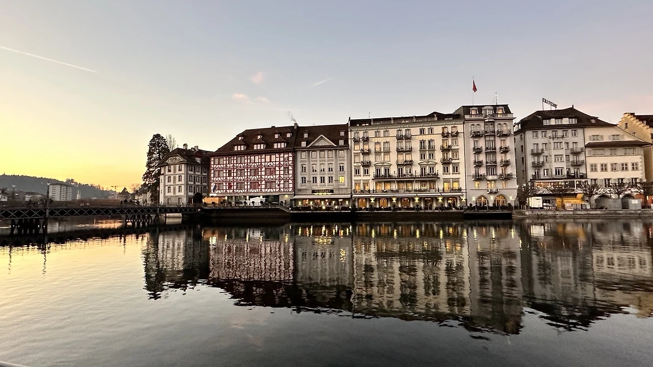 루체른 기차역에 내리자 팔레트를 쏟아부은 듯 다양한 색채의 도시가 눈앞에 펼쳐진다. 루체른 역시 강을 따라 발달한 도시다. 강 폭은 한강보다 좁고 수류는 제법 거세서 폭포 같은 소리를 낸다. 강물 위로는 강가 건물들이 그림자를 드리우는데, 화가와 사진가들을 유혹하기에 이만한 장소가 없겠다.