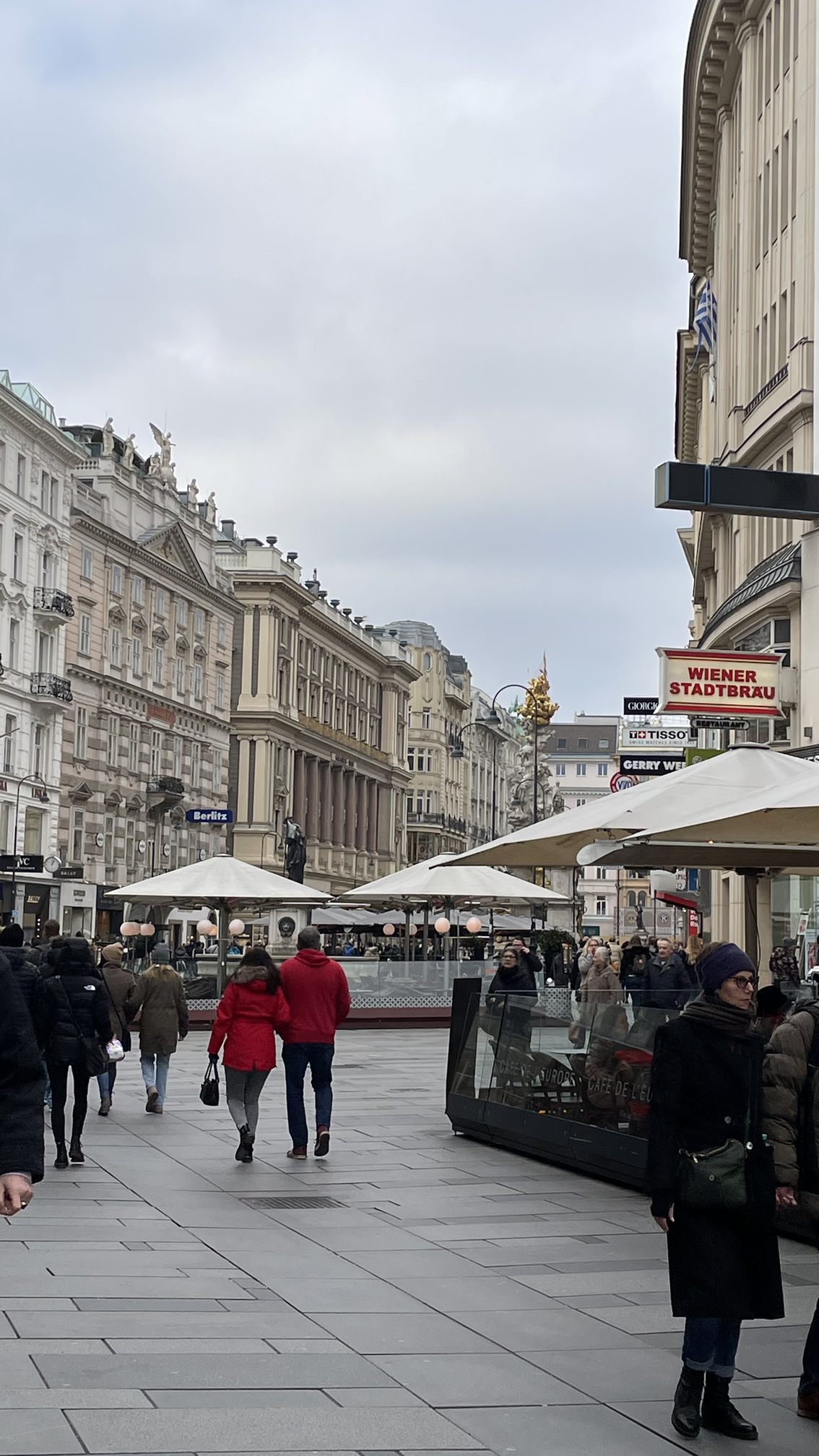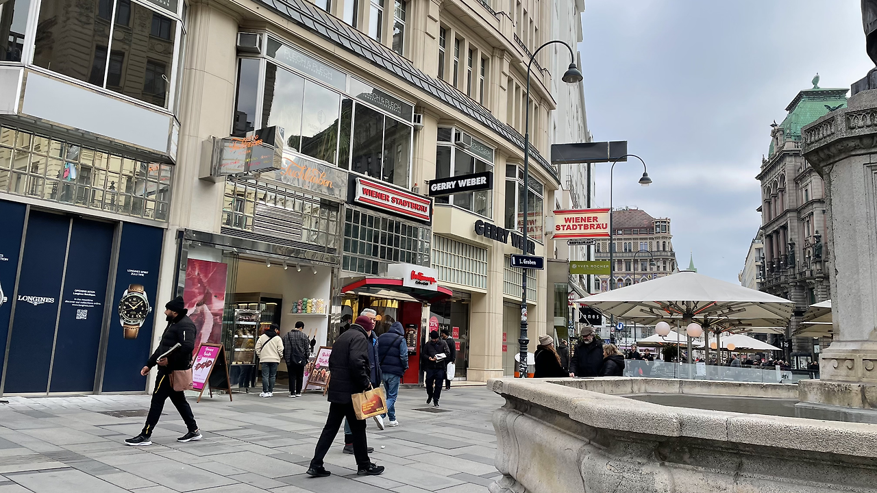 명품 매장이 줄지어 있는 그라벤 거리다. 그라벤은 구덩이라는 뜻. 옛날 로마군이 주둔하면서 이곳에 해자를 팠었다고 한다. 그라벤 거리 대각선에 슈테판 성당이 있다.