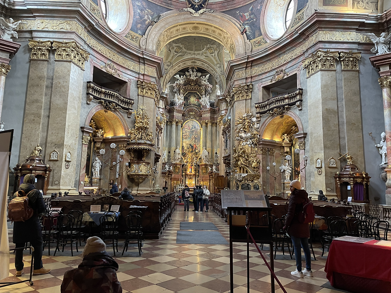 그라벤 거리 끝에 푸른 돔을 가진 피터 대성당이 있다. 슈테판 성당에 비해 규모면에서 많이 작지만 바로크 양식의 내부는 깜짝 놀랄 만큼 화려하다. 게다가 하루 두 번 연주되는 파이프 오르간 공연은 빈의 명물이고 자랑이다. 오후 3시, 연주를 듣기 위해 성당을 다시 찾는다. 장중한 파이프 오르간 연주를 감상한 후 10유로를 도네이션 하고 나온다. 천정 프레스코화와 독수리가 그려진 천정 중앙은 화려하고 장엄하다. 유럽 성당들은 주민을 위해 정기 음악회를 여는 곳이 많다. 성당 연주회는 우리가 경험하지 못한 유럽인의 현명하고 수준 높은 문화라는 생각이 든다.