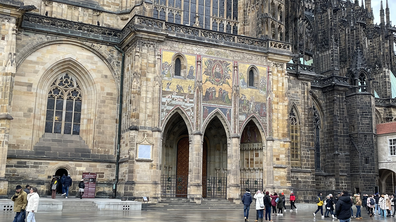 근위병이 서 있는 성 안쪽으로 들어가면 프라하성 뒤쪽의 성 비투스 대성당과 이어진다. 건물이 완성되기까지 700년이 더 걸린 비투스 대성당은 다양한 정면 양식을 보여준다. 르네상스 성탑 위에 고딕 성단, 바로크 양식의 탑 지붕, 네오고딕의 서쪽 건물까지.