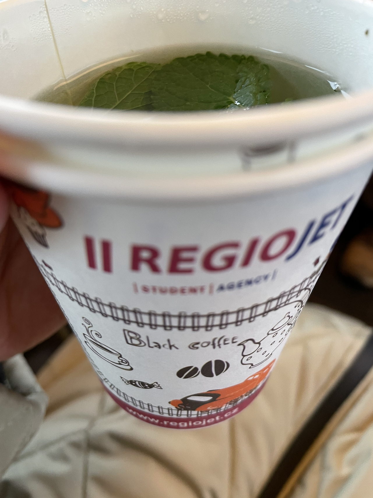 민트 티. 레지오 제트를 타면 음료를 무료로 제공받는다.