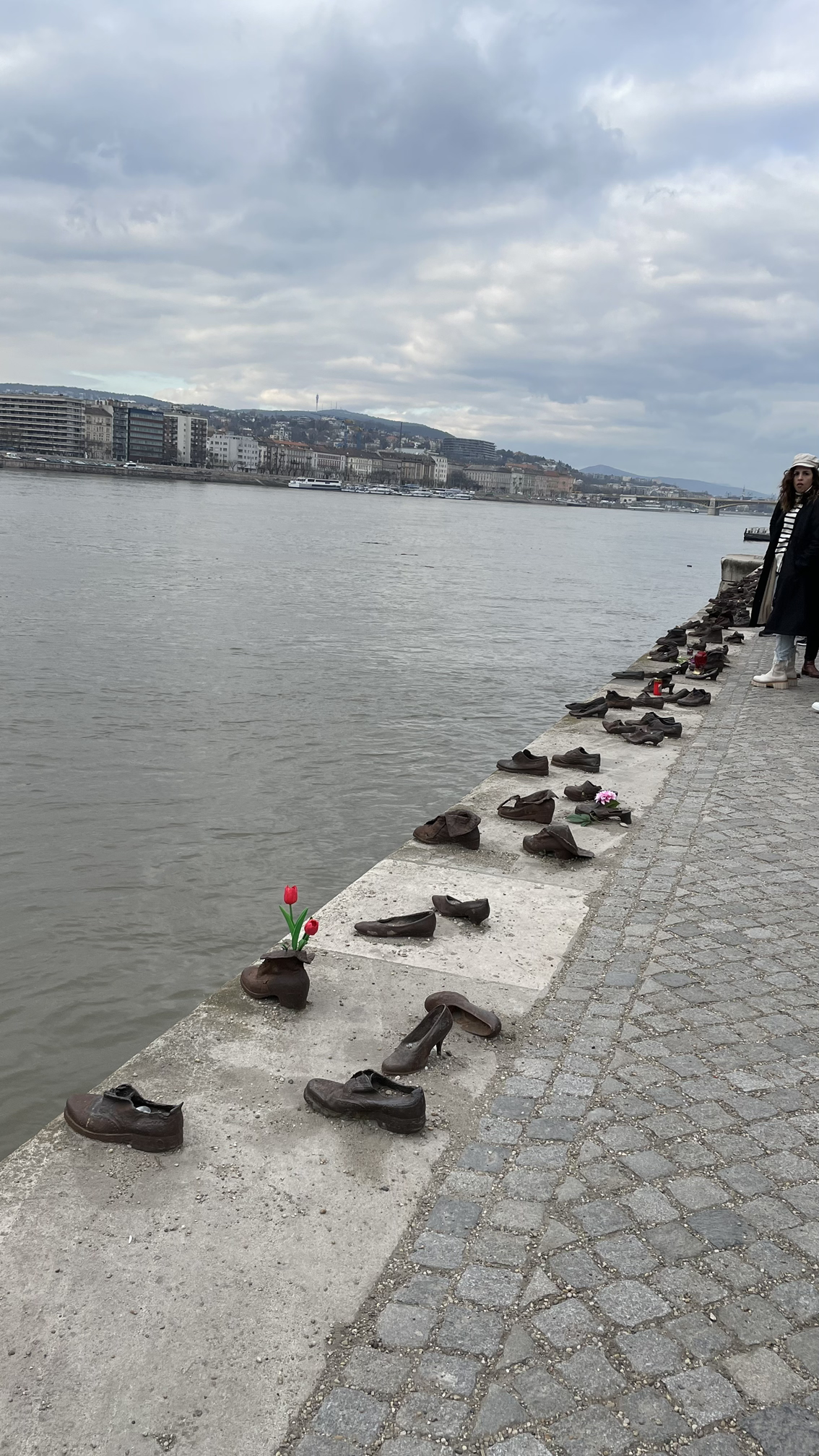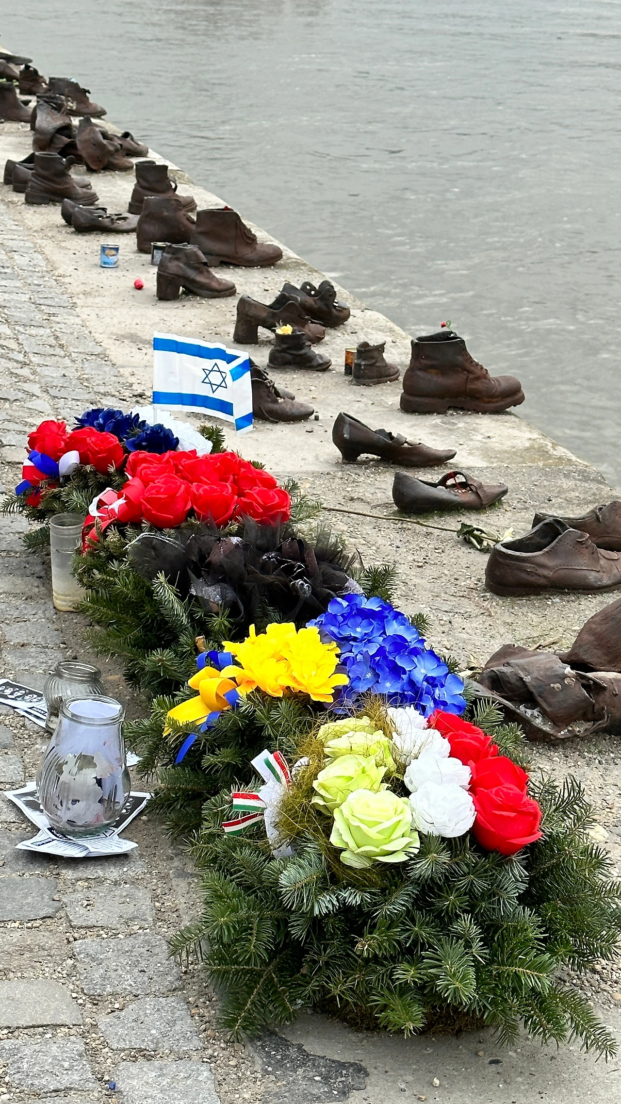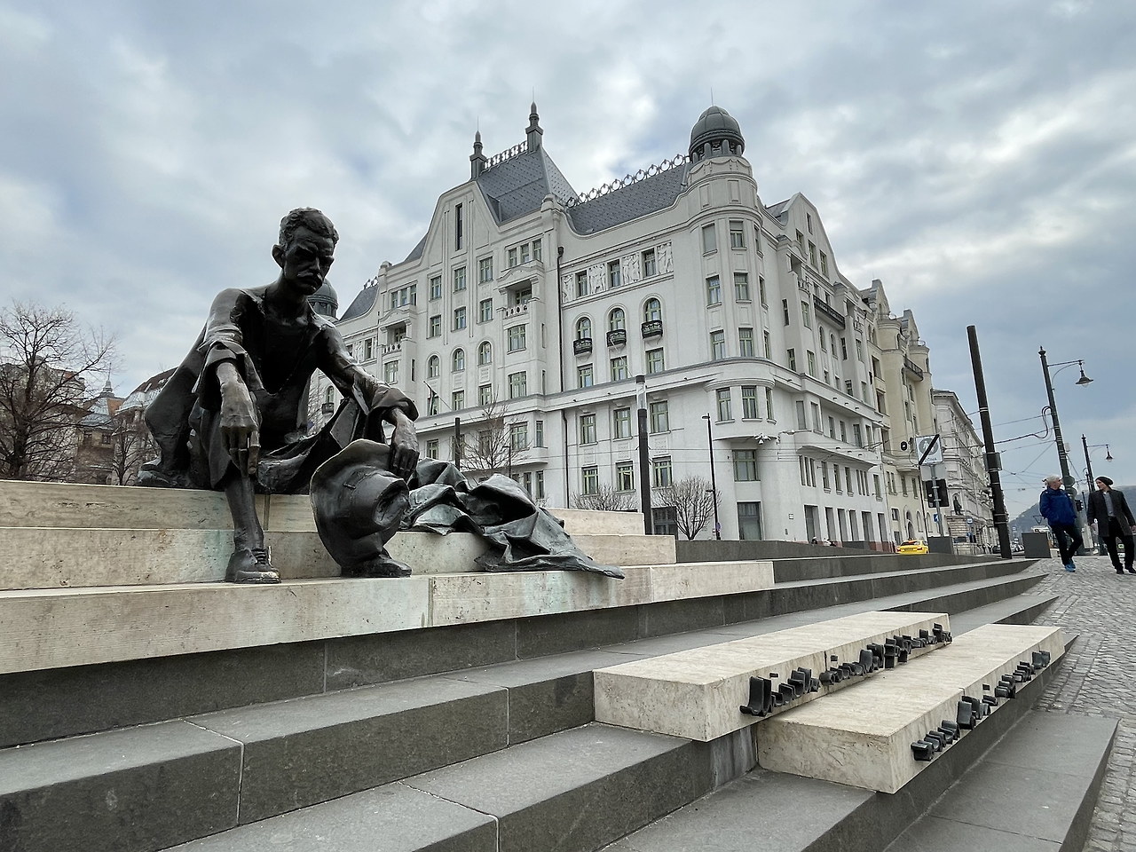 성당을 나와 다뉴브 강 산책로의 특별한 신발을 만나러 간다. 나치에 의해 이곳에서 학살당한 사람들의 신이 현장에 쇠 조형으로 만들어져 있다. 신 속에 꽃을 두고 간 사람들, 쪼그리고 앉아 기도를 하거나 사진 찍는 사람들을 만날 수 있다.