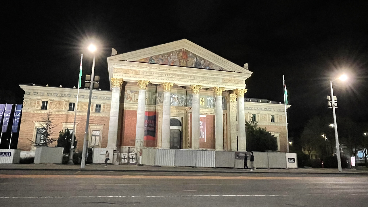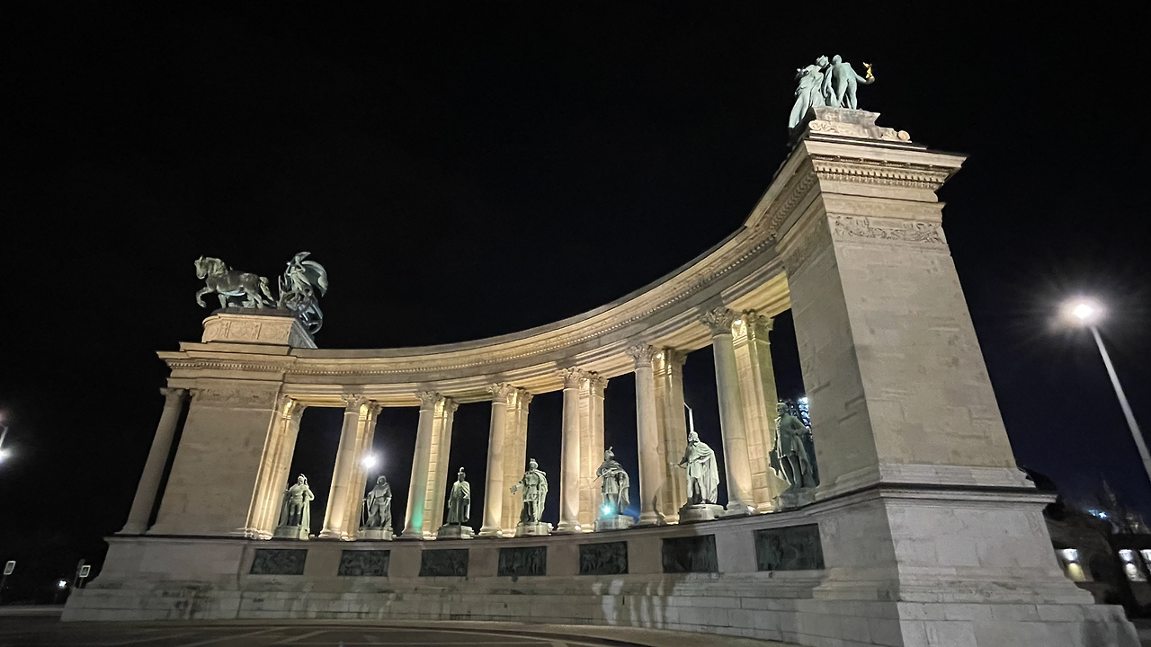 영웅광장(회쇠크 광장)의 영웅들과 광장 맞은 편의 미술관 야경이다.