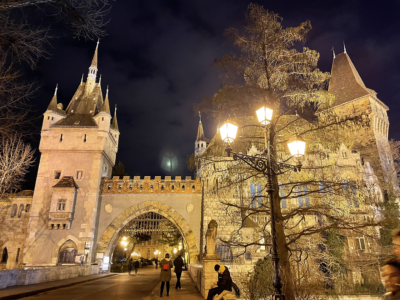 호텔로 돌아왔을 때는 5시가 넘었다. 노을이 지고 있다. 호텔 뒤로 산책할 시간이다. 호텔을 나서 세체니 온천 쪽으로 걷다 보면 영웅광장과 만난다. 두 개의 원호 위에 영웅들 조각이 서 있다. 중앙탑을 본 후 광장 뒤로 걸으면 바흐다훈야드 성과 만난다. 야경이 아름답다. 바흐다운야드 성 옆에는 야외 스케이트 장이 야간 개장 중이다. 조명에 도드라진 흰 빙판과 성에서 나오는 노란 불빛이 고요한 밤을 반짝이게 한다. 빙판 위를 빙글빙글 도는 사람들 모습은 얼핏 보면 태엽 인형 같다. 익숙한 듯 낯선 부다페스트의 밤풍경이다. 회쇠크 광장의 초록 잔디 앞, 바흐다훈야드 성문이 고성의 위용을 드러내고 있다.