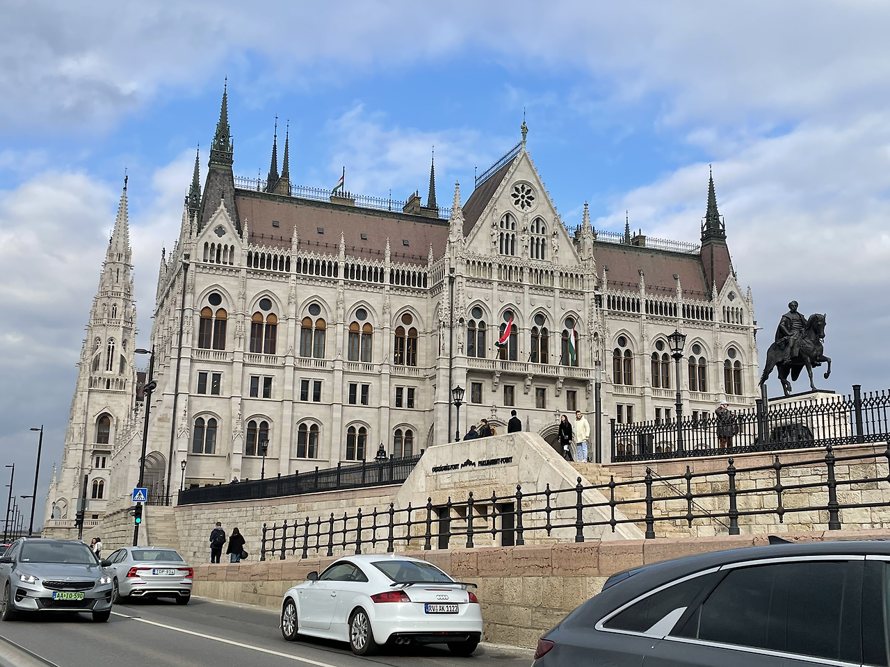 헝가리 의회 의사당. 다뉴브 강을 거슬러 걷는다. 얼마 안 가서 헝가리 의회 의사당 건물이 화려하게 등장한다. 밤이 되면 이 의사당을 배경으로 부다페스트의 야경을 보려는 사람들이 몰려든다 한다. 헝가리 의회 의사당은 영국 의회 의사당에 이어 세계에서 두 번째로 큰 규모를 자랑한다. 건물 바깥쪽으로 85명의 헝가리 역대 통치자 전신 조각상이 둘러 서 있다. 건물 외관은 일 년 365일을 상징하는 365개의 첨탑이 우뚝 서 있다.