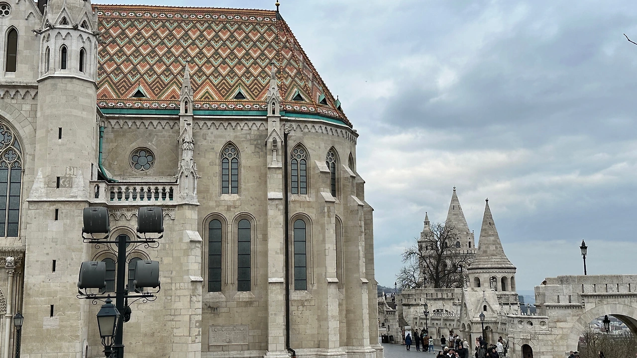 정교한 조각의 마차슈 성당(좌)과 우측 뒤로 보이는 어부의 요새다. 공사 중인 도로를 이리저리 피해 도착한 마차슈 성당이다. 역대 왕의 대관식과 왕가의 결혼식이 이곳에서 거행되었다. 컬러풀한 지붕이 정말 예쁜 성당이다. 성당 외벽에는 왕의 대관식 장면이 부조되어 있다.