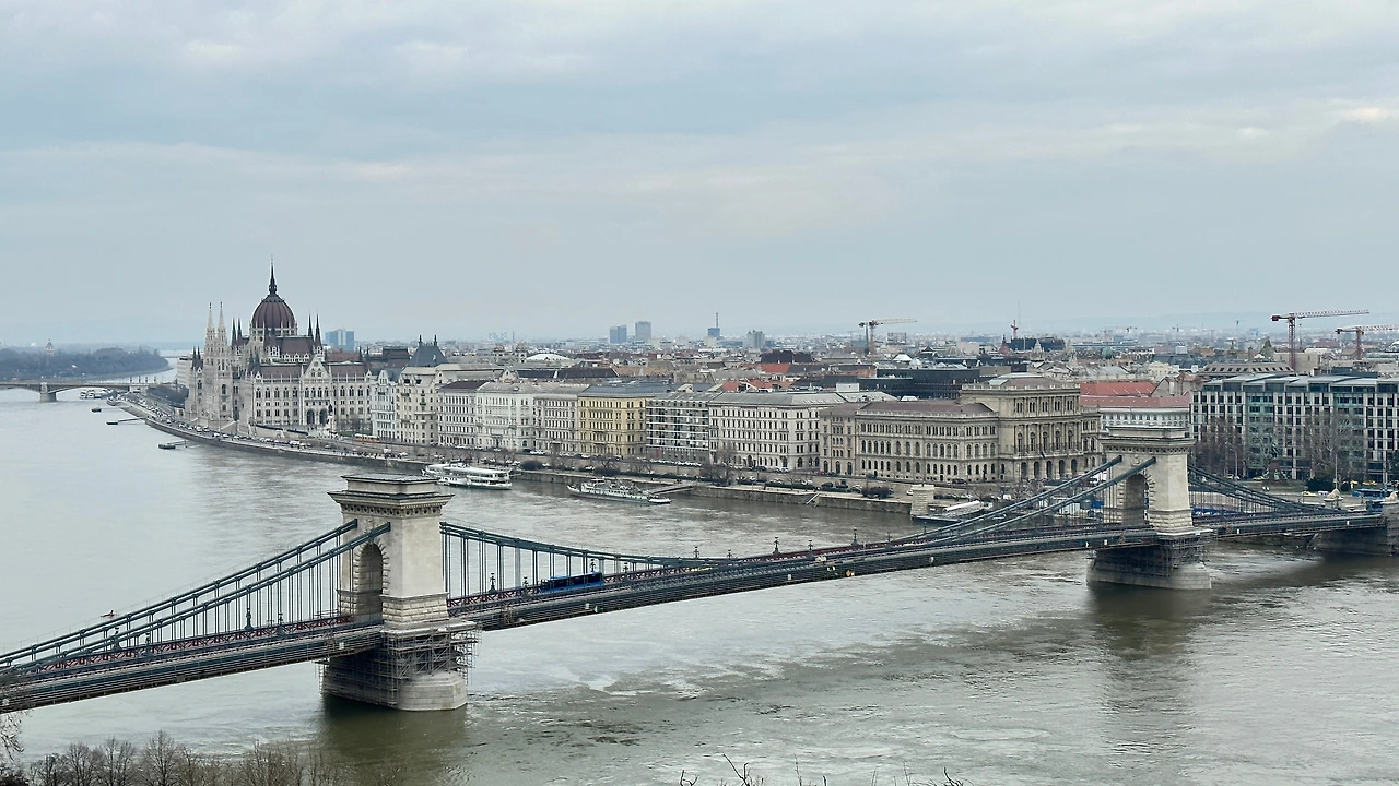 세체니 다리. 이슈트 반(스테판) 대성당에서 세체니 다리까지는 구글 앱에 6분으로 뜬다. 나는 천천히 걸어 10분 만에 도착한다. 다리 아래로 다뉴브 강이 물결치고 있다.