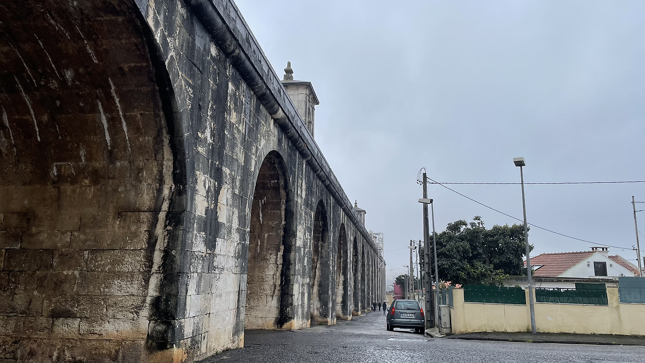 철철 내리는 비에 온몸이 흠씬 젖건만 아랑곳 않고 걷는다. 수도교를 볼 생각에 들뜬 마음이다. 조약돌 같기도 하고 타일 같기도 한 리스본의 도로는 미끄럽다.