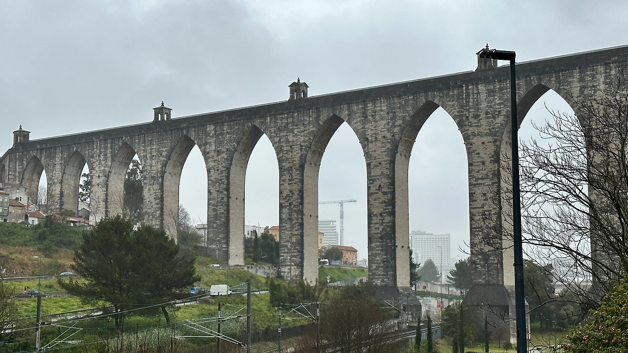 18세기 주앙 5세에 의해, 리스본에 식수를 끌어오기 위한 시설로 건축되었다. 교각을 이루는 아치는 모두 35개, 가장 높은 아치는 65미터가량 된다. 수도교의 총길이는 58킬로미터로 알칸타라 계곡을 가로질러 놓여 있다.