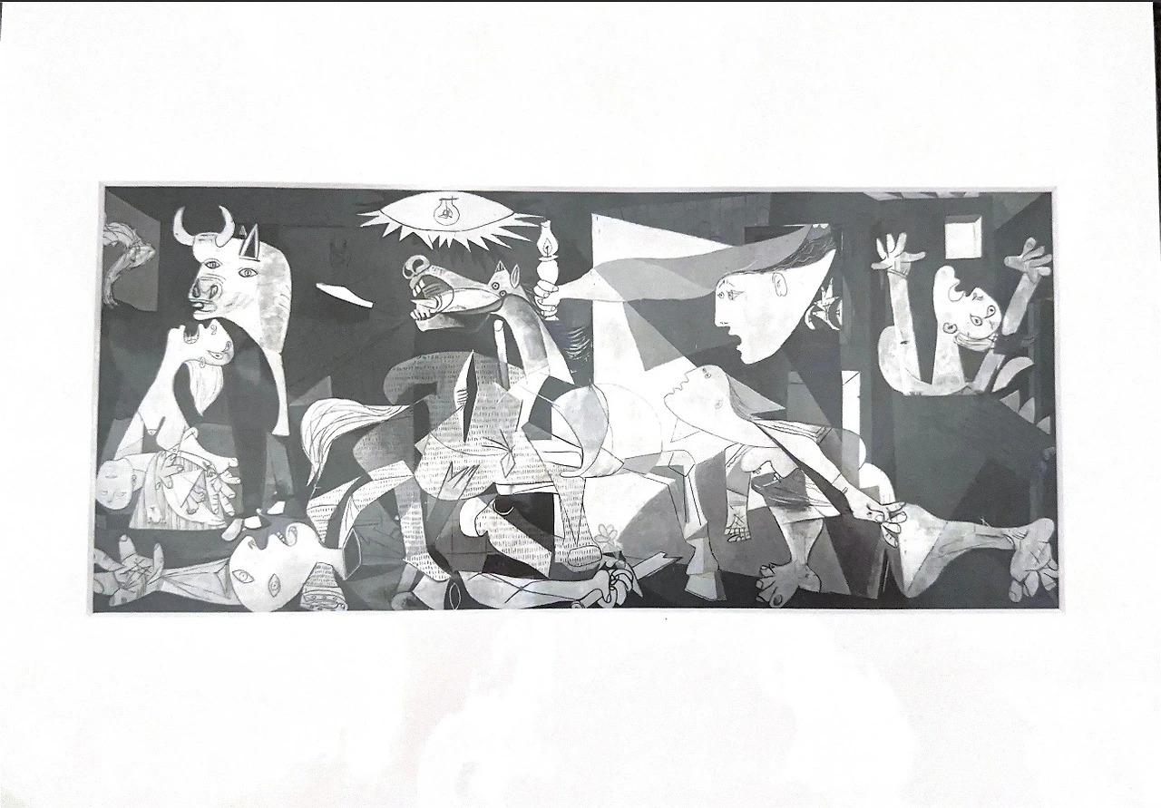 게르니카는 스페인 북부 항구도시 빌바오에서 북동쪽으로 약 1시간 거리에 있는 조용한 시골마을이다. 1937년 스페인은 보수와 진보의 대결로 내전이 한창일 때였다. 이때 통치자는 프란시스코 프랑코. 그는 자신의 입지를 다지고 세력을 강화하기 위해 독일 나치에게 손을 내미는데 그 대가가 게르니카를 무기 실험 장소로 내어주는 것이었다. 평화롭던 마을에 갑자기 집중포화가 시작되고 4시간 여 만에 1650여 명이 사망한다. 마을 주민 1/3에 해당하는 숫자다. 파리에서 만국박람회 출품작을 준비하던 중 이 소식을 접한 피카소는 작품의 방향을 '게르니카 고발'로 잡는다. 박람회까지 남은 시간 50일, 그는 자신의 열정과 천재성을 쏟아부어 게르니카를 완성한다. 게르니카는 그해 만국박람회에 출품되어 전 세계에 스페인 내전의 야만성을 알리게 된다. 피카소는 생생한 전쟁 장면을 위해 신문 기사와 루벤스 작품 <전쟁의 공포 the horrors of war> 등에서 영감을 얻은 것으로 전해진다.