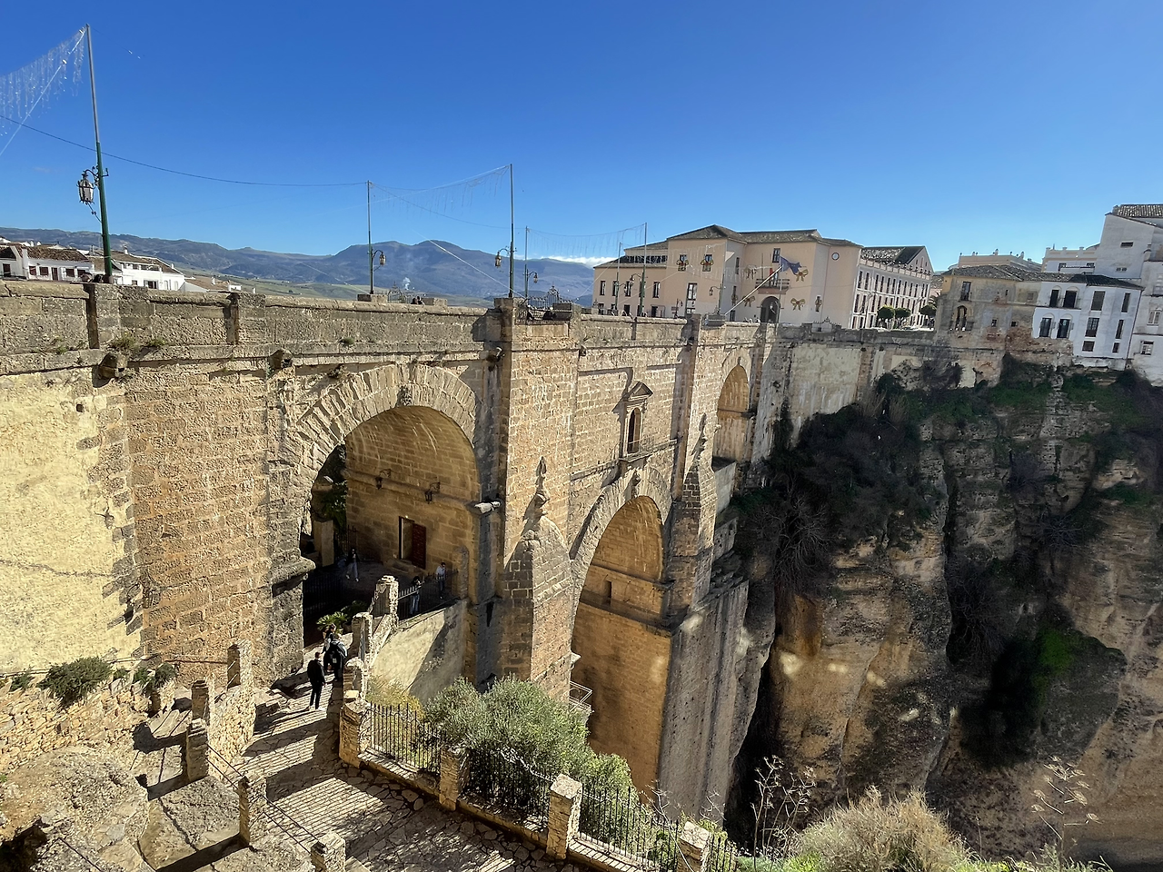 지중해 남부, 1월의 태양이 오늘따라 유난히 뜨겁다. 누에보 다리가 햇볕에 반짝이는 것을 보면서 나는 요기할 만한 식당을 찾는다. 누에보 다리의 구시가지에 면한 돈 미구엘 식당. 좁은 층계를 따라 아래로 내려가면 다리 아래 협곡이 내려다 보이는 곳에 정갈하게 테이블이 놓여 있다. 태양을 가릴 만한 파라솔 하나 없는 자리에 앉아 늦은 점심을 즐긴다. 소꼬리찜과 연어샐러드에 샹그릴라 한 잔을 곁들인다. 분위기도 맛도 최상이다.