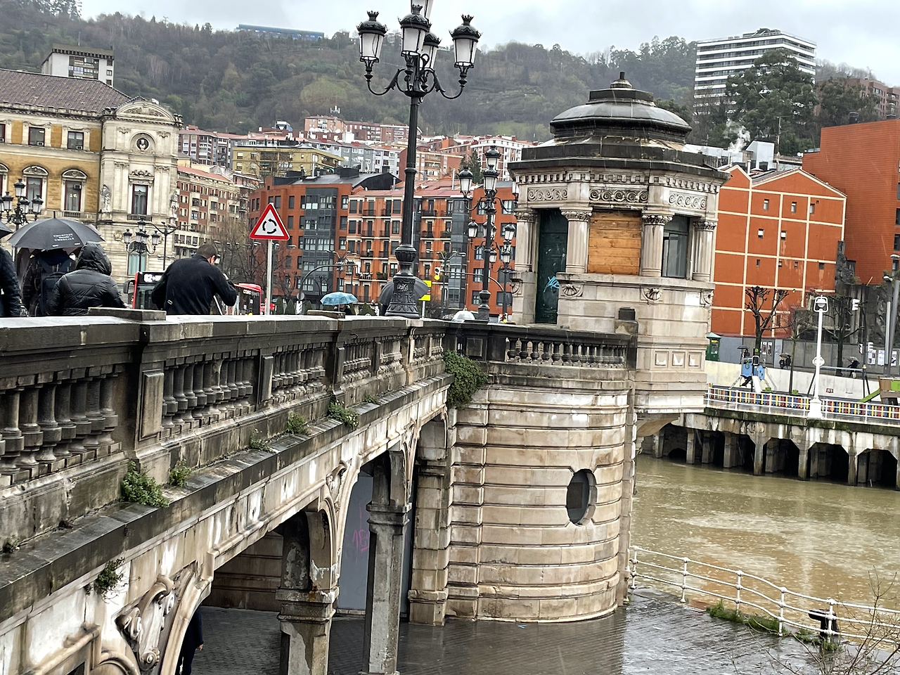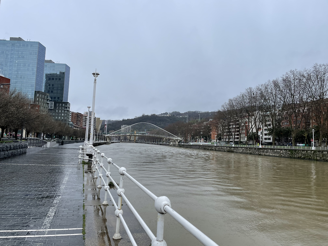 구겐하임 가는 길. 비가 와서 황색으로 변한 네르비온 강