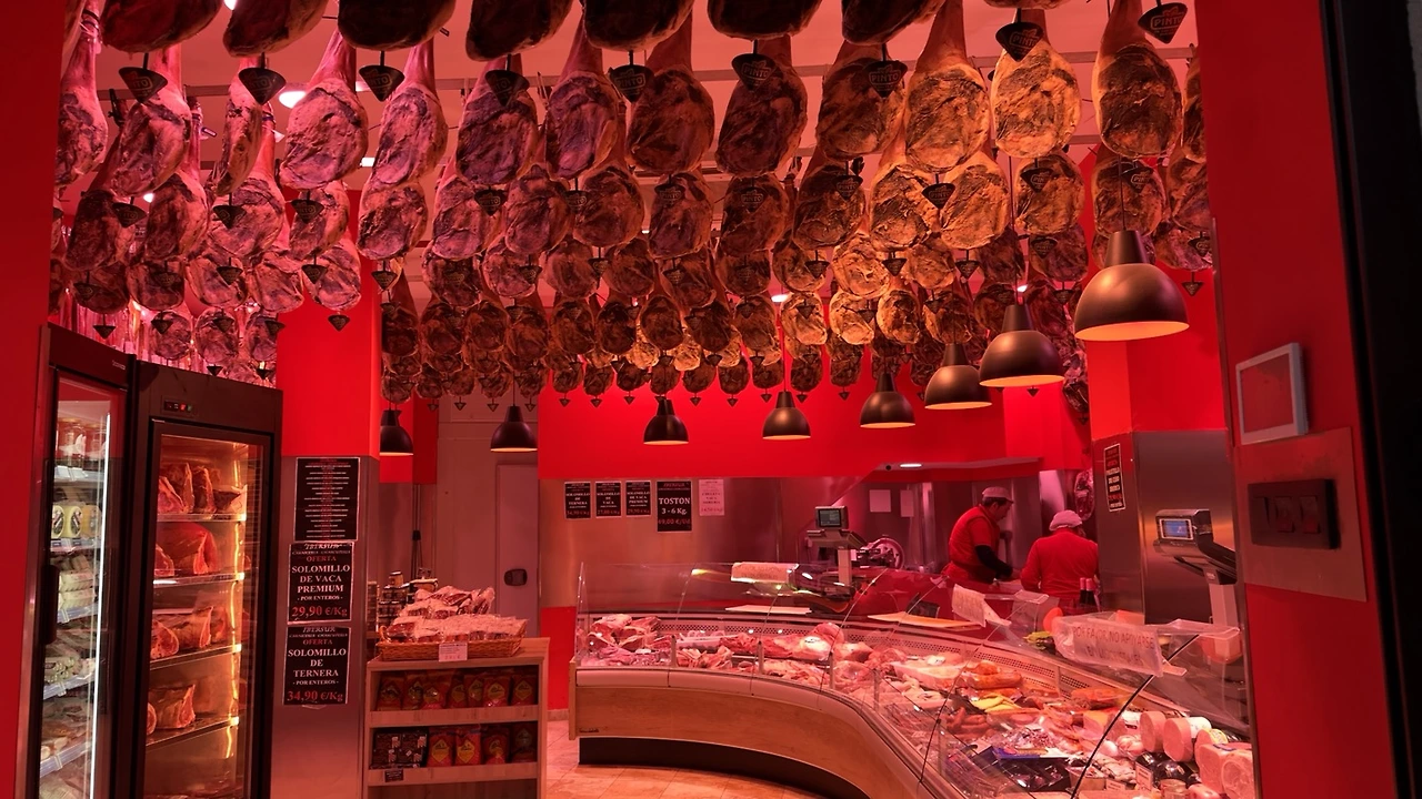 빌바오의 하몽 가게. 하몽을 자르는 남자.