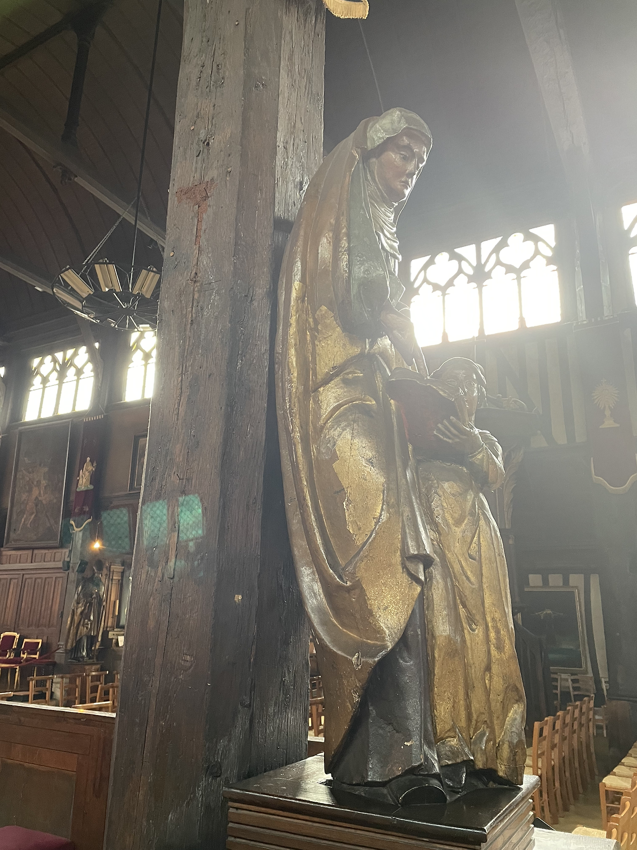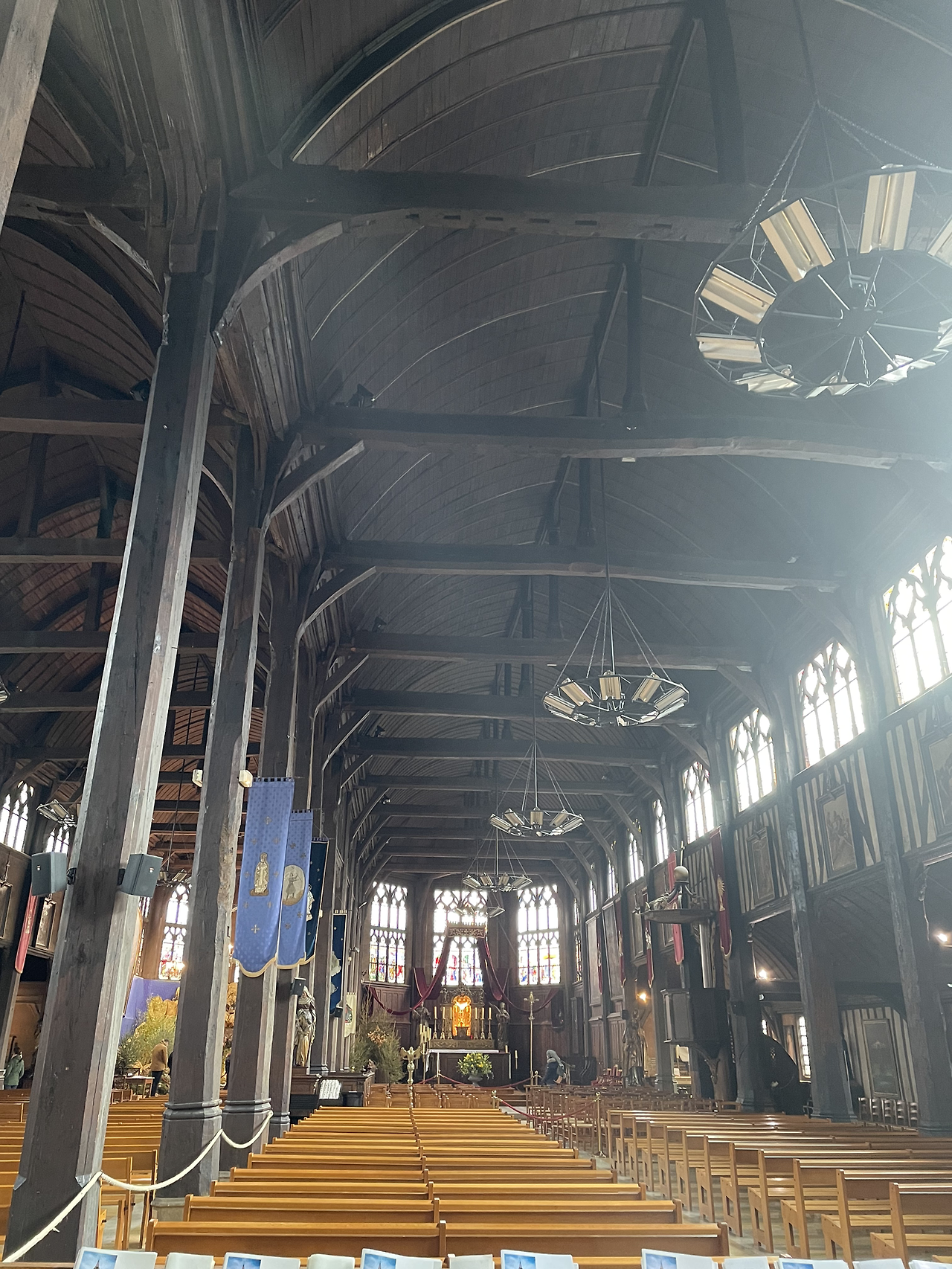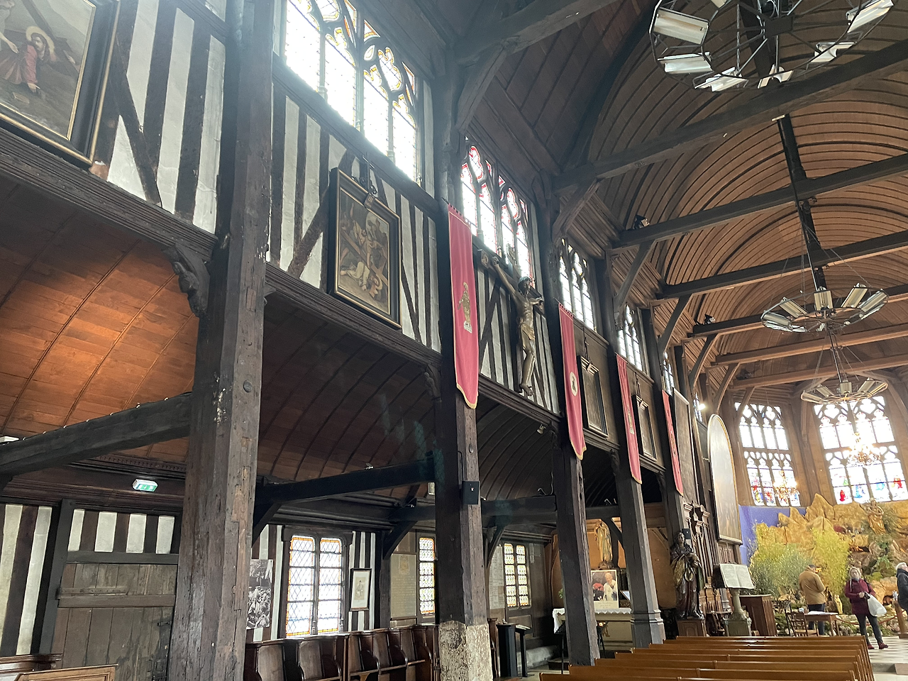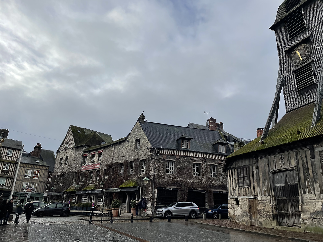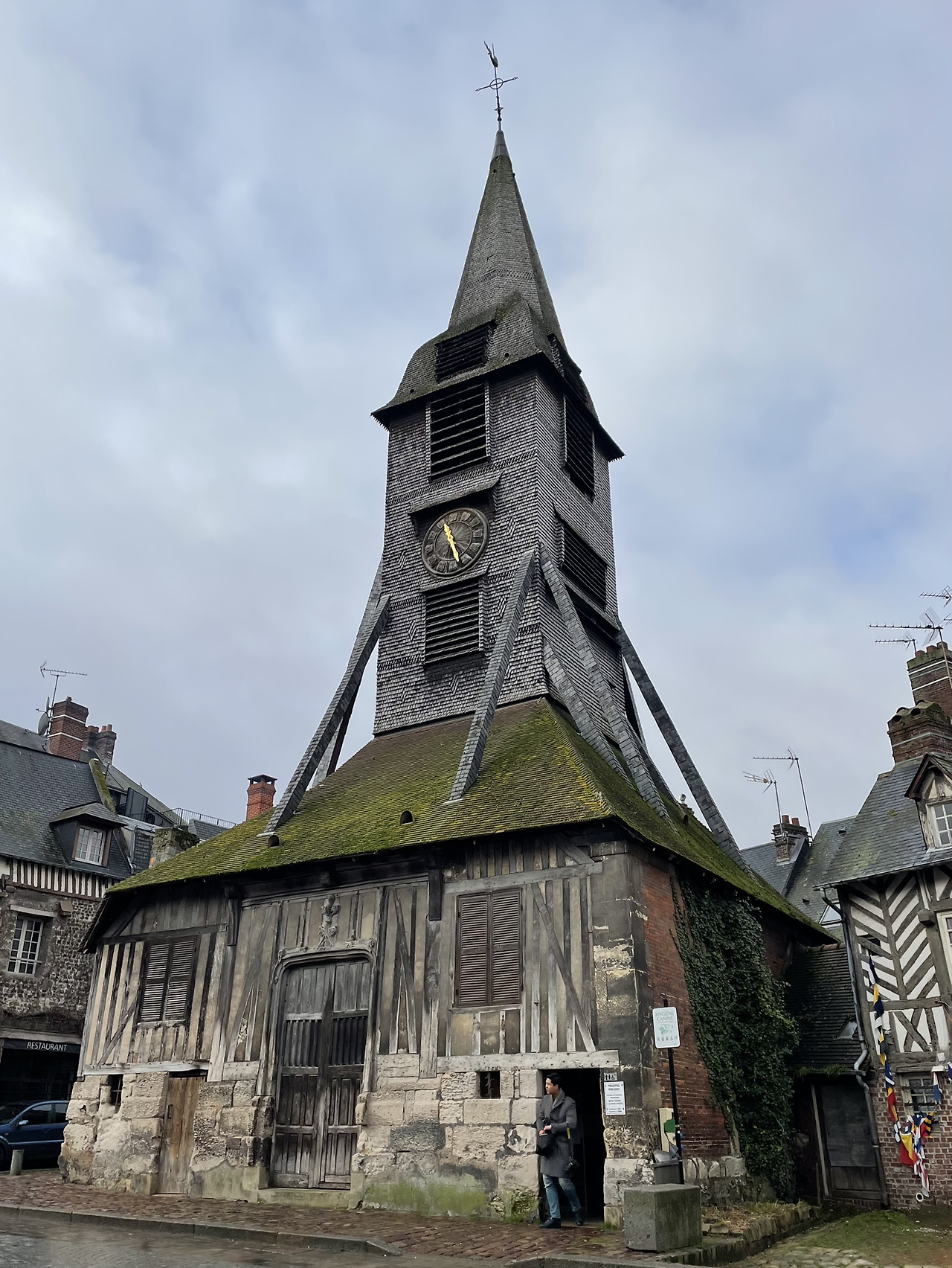 작은 광장 중앙에 있는 엘리제 성당 외관이 독특하다. 프랑스에서 가장 오래된 목조성당이란다. 검게 그을린 듯 세월에 치인 듯 투박한 몸체로 서 있는데, 그 서정성이 옹플뢰르와 잘 조응한다. 건물이 무너질까 염려되어 종탑은 옆에 따로 세워 두었다.