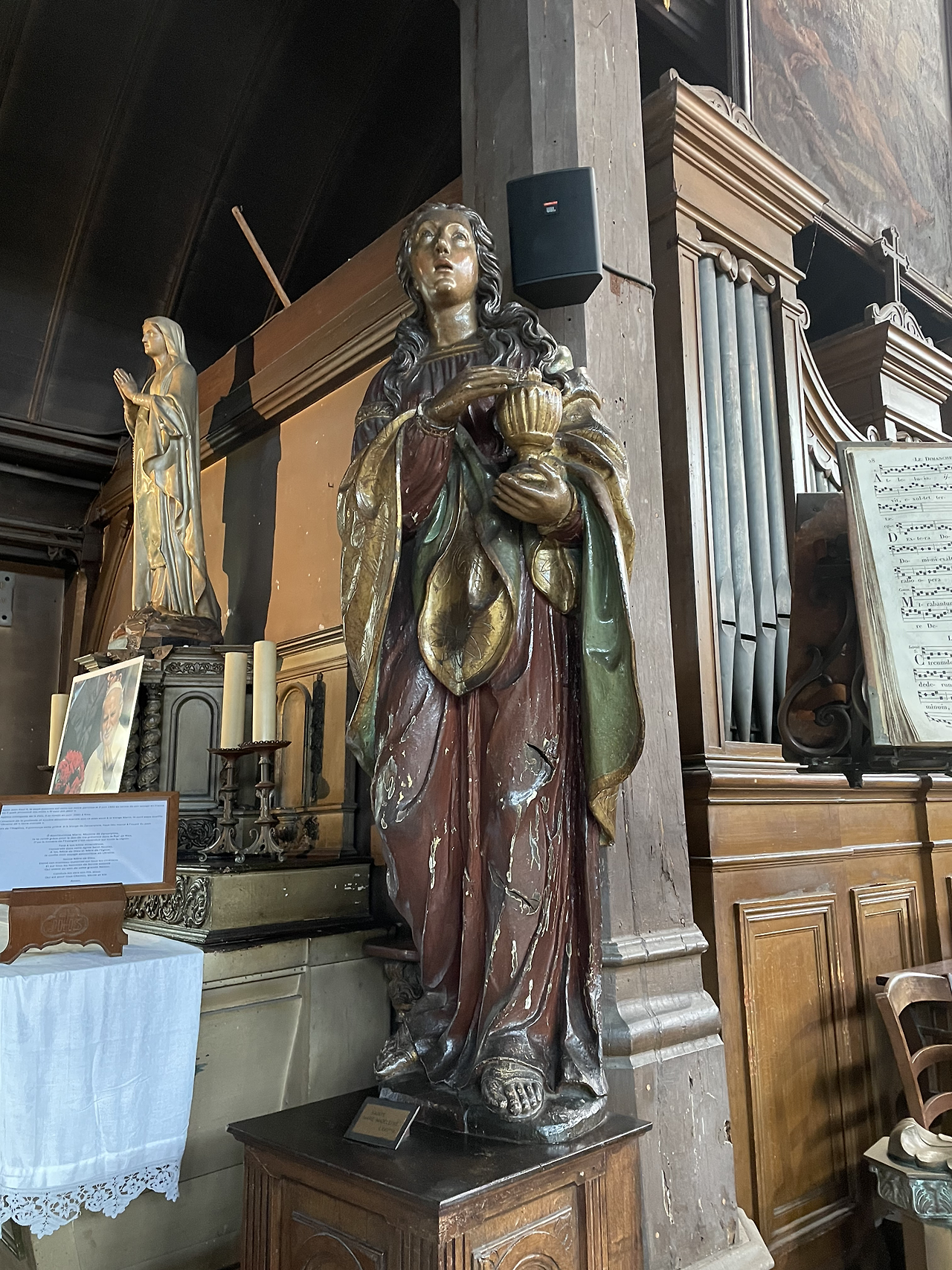 엘리제 성당 내부. 조각품도 모두 목재다.
