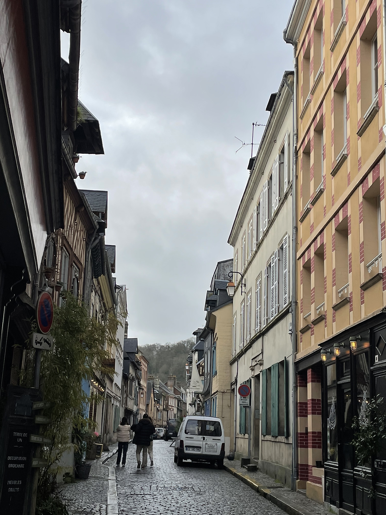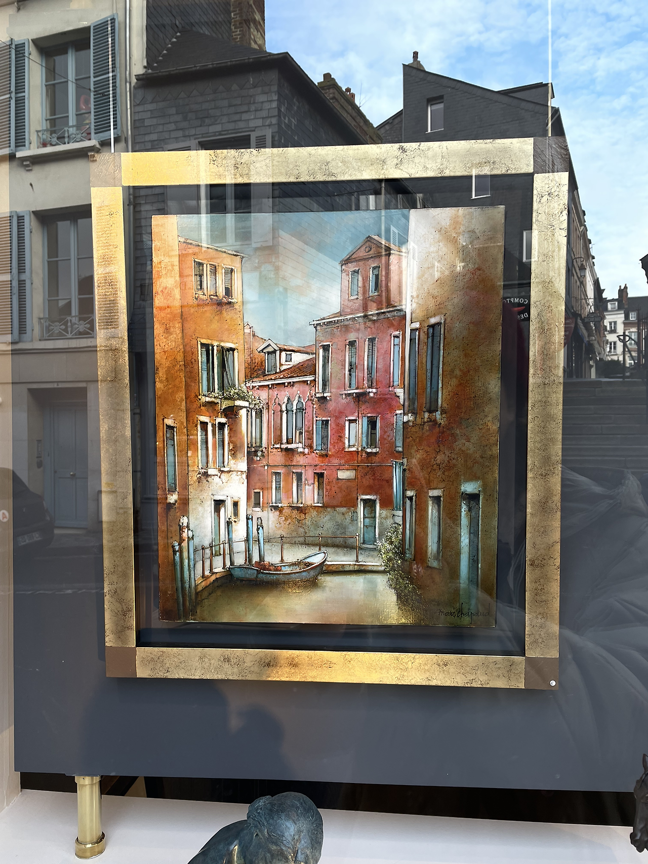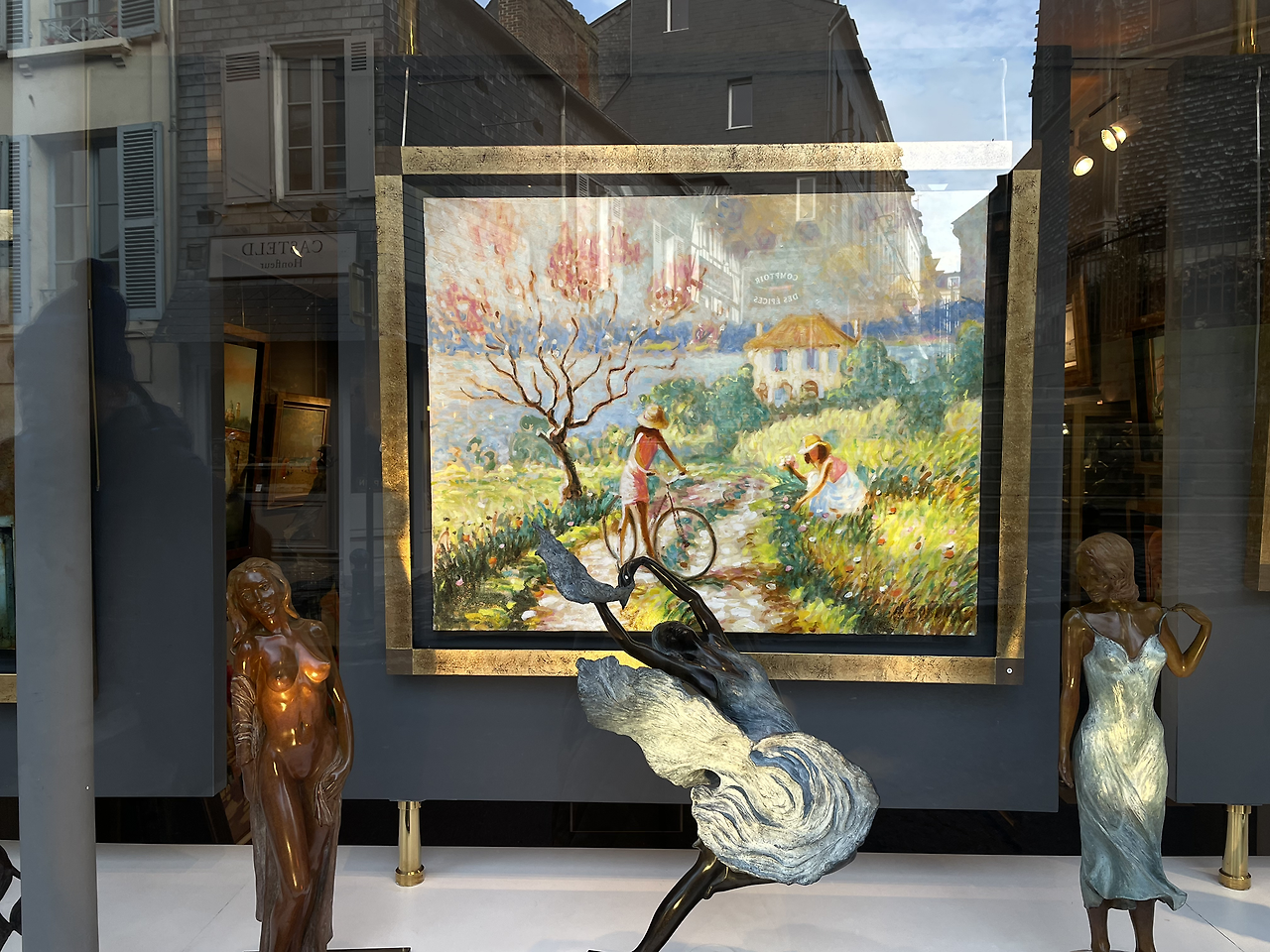 갤러리에 전시된 조각품.갤러리와 카페가 몰려 있는 옹플뢰르 뒷골목