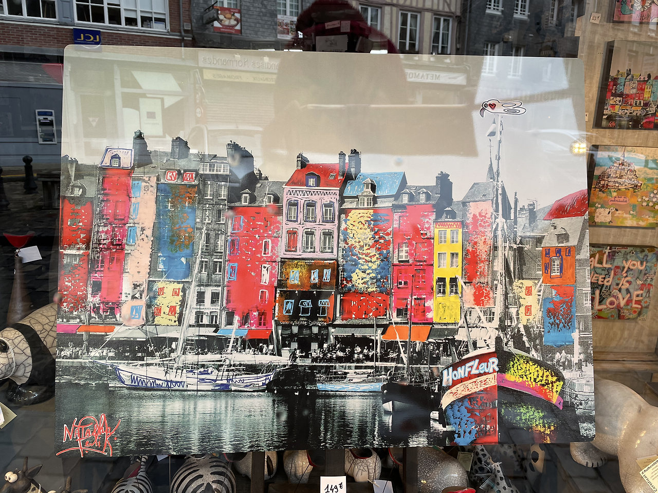 노르망디 해안 또 하나의 아름다운 중세 마을 옹플뢰르다. 옹플뢰르는 조용한 어촌마을에 화가들이 모여들면서 자연스럽게 형성된 예술인 마을로 지금도 개성 있는 아뜰리에가 거리에 즐비하다. 나는 호기심 가는 곳 어디든 문을 밀고 들어가 그림과 조각 작품을 감상하는 특권을 누린다. 작은 도개교는 바다를 호수인 듯 막아서고 안쪽엔 그림책에서 나온 듯한 보트들이 정박해 있다. 옹플뢰르는 보트와 일렬로 늘어선 원색의 건물들과 호수처럼 고요한 깊고 검은 바다의 앙상블이다. 단색의 에트르타, 총천연의 옹플뢰르다.