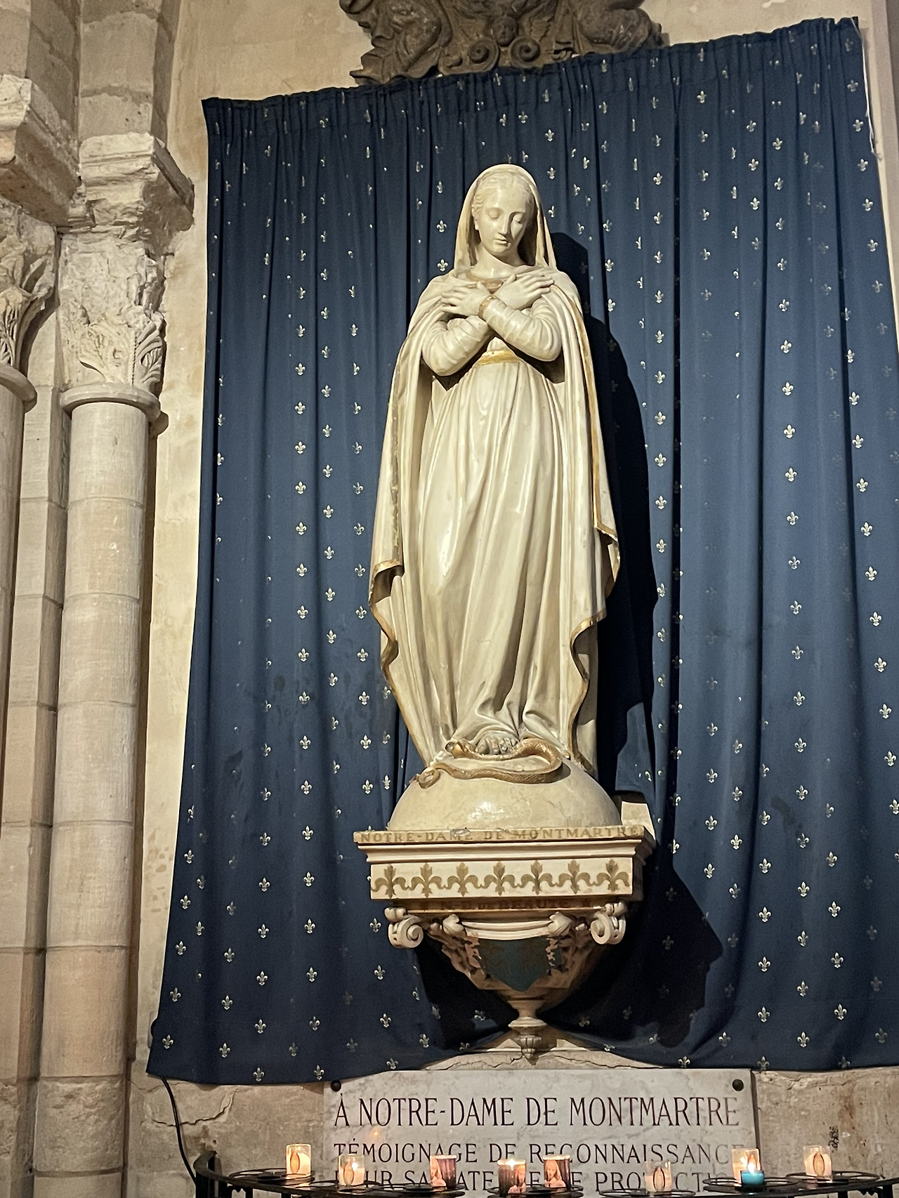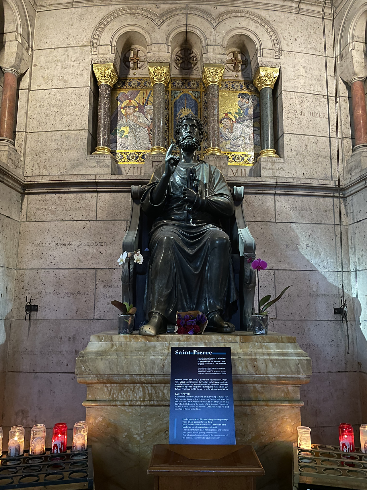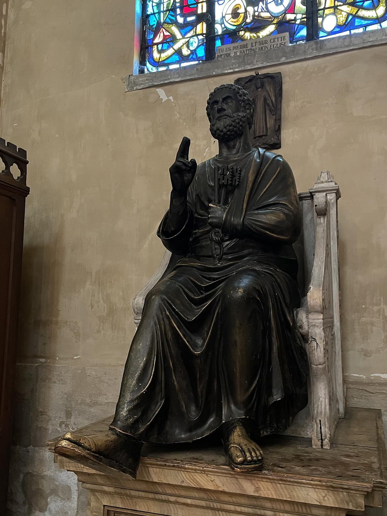 피에르 성당 안에는 기억에 남을 특이한 조각상들이 있다. 뱀을 밟고 서 있는 성모상, 자신의 떨어진 머리를 들고 있는 데니스 신부상, 천국으로의 안내자 베드로상. 베드로의 앞으로 내민 오른발은 사크레쾨르의 베드로와 마찬가지로 수많은 사람의 소망이 도포되어 반질반질 윤이 난다.