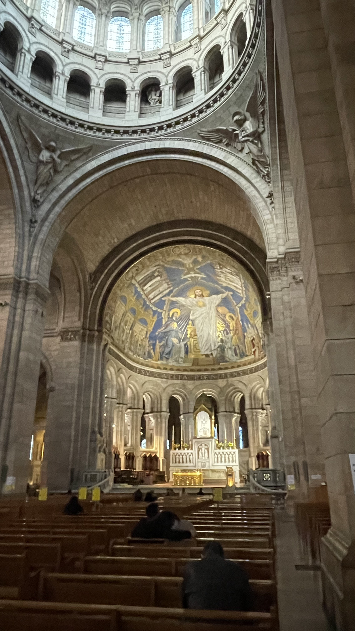 대성당 앞으로 시원하게 펼쳐진 계단에는 음료수를 든 사람들이 편안하게 앉아 파리 시내를 감상하기도 한다. 사크레쾨르 대성당은 파리 시내에서 가장 높은 지대로 파리 조망, 최고의 장소이기도 하다. 풍경을 뒤로하고 안으로 들어간다. 세계에서 가장 큰 성당 내부 모자이크 벽화가 이곳에 있다.