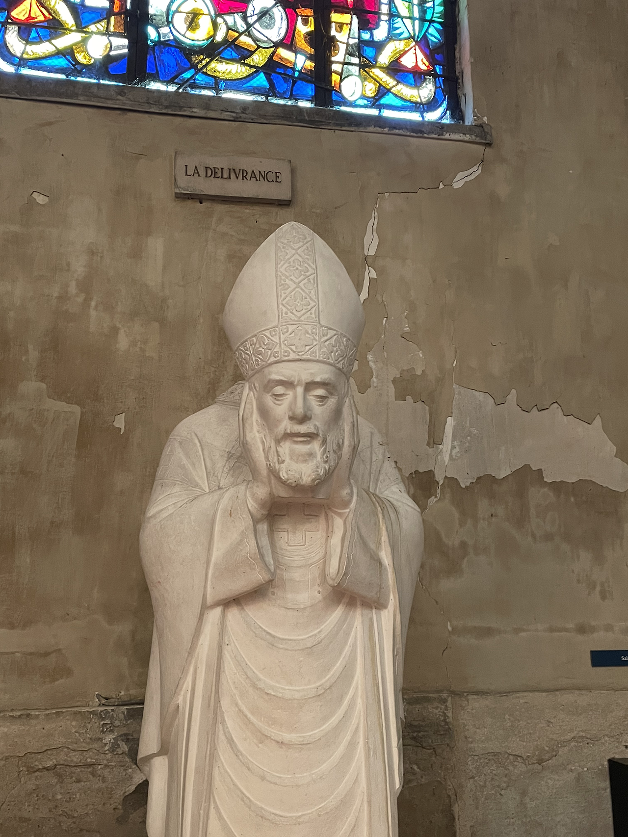 성 피에르 성당 안의 데니스 신부 동상. 자신의 두상을 들고 서 있다.