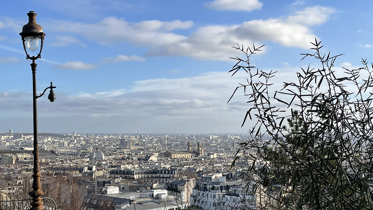 샤크레쾨르 대성당 앞에서 내려다본 파리 시내 전경. 샤크레쾨르는 파리 시내에서 가장 높은 지대에 위치해 있다. 시내 조망하기 좋은 장소다.