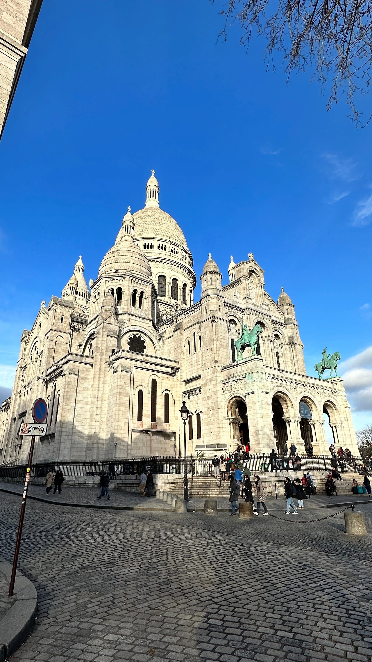 샤크레쾨르 대성당입구에는 잔다르크 동상이 푸른 하늘을 배경으로 서 있다.
